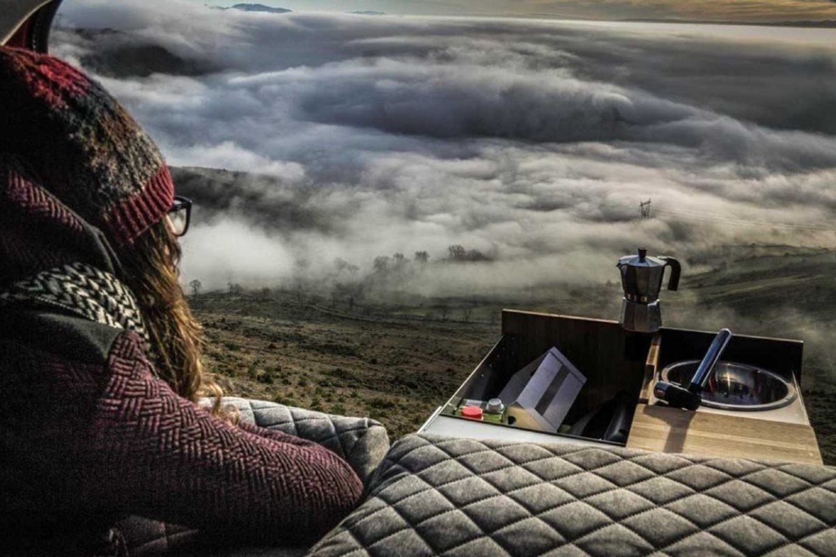 Para as dormidas, há a opção mais convencional, que obriga ao rebatimento dos encostos dos bancos traseiros para configurar uma confortável cama de casal, ou a alternativa para solteiros, na pequena tenda que se monta no teto do veículo.