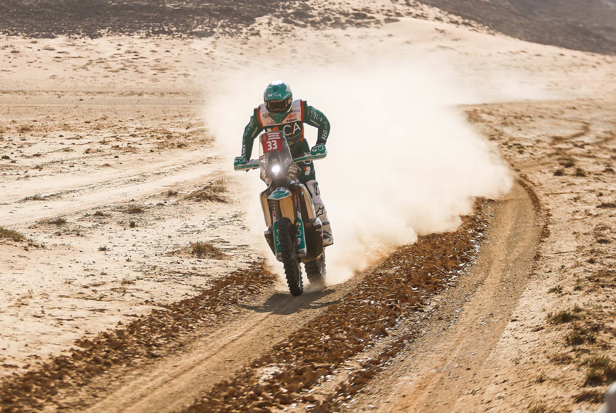 Nas duas rodas, um dos animadores da primeira semana nem chegou a partir para a sétima etapa. Daniel Sanders (GasGas) caiu no percurso de ligação para a partida e sofreu uma fratura no ombro, ficando de fora do Dakar de forma inglória.