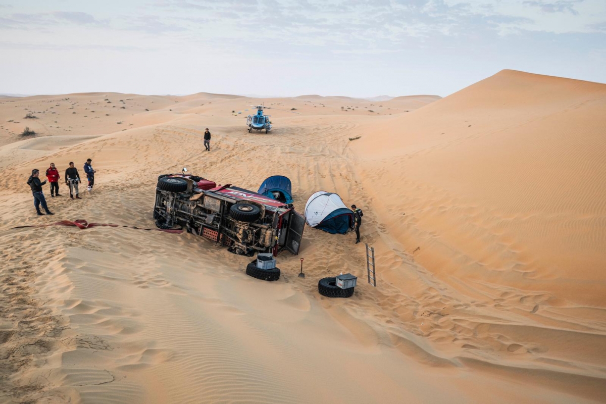 “Infelizmente, depois da chegada da etapa de ontem [na quinta-feira], a primeira parte da etapa maratona, e de termos feito a manutenção e revisão [SSV] nós próprios, sem direito a assistência da X-raid Team, decidimos não partir para a etapa de hoje, regressando ao bivouac em ligação”, explicou João Ferreira nas suas redes sociais.