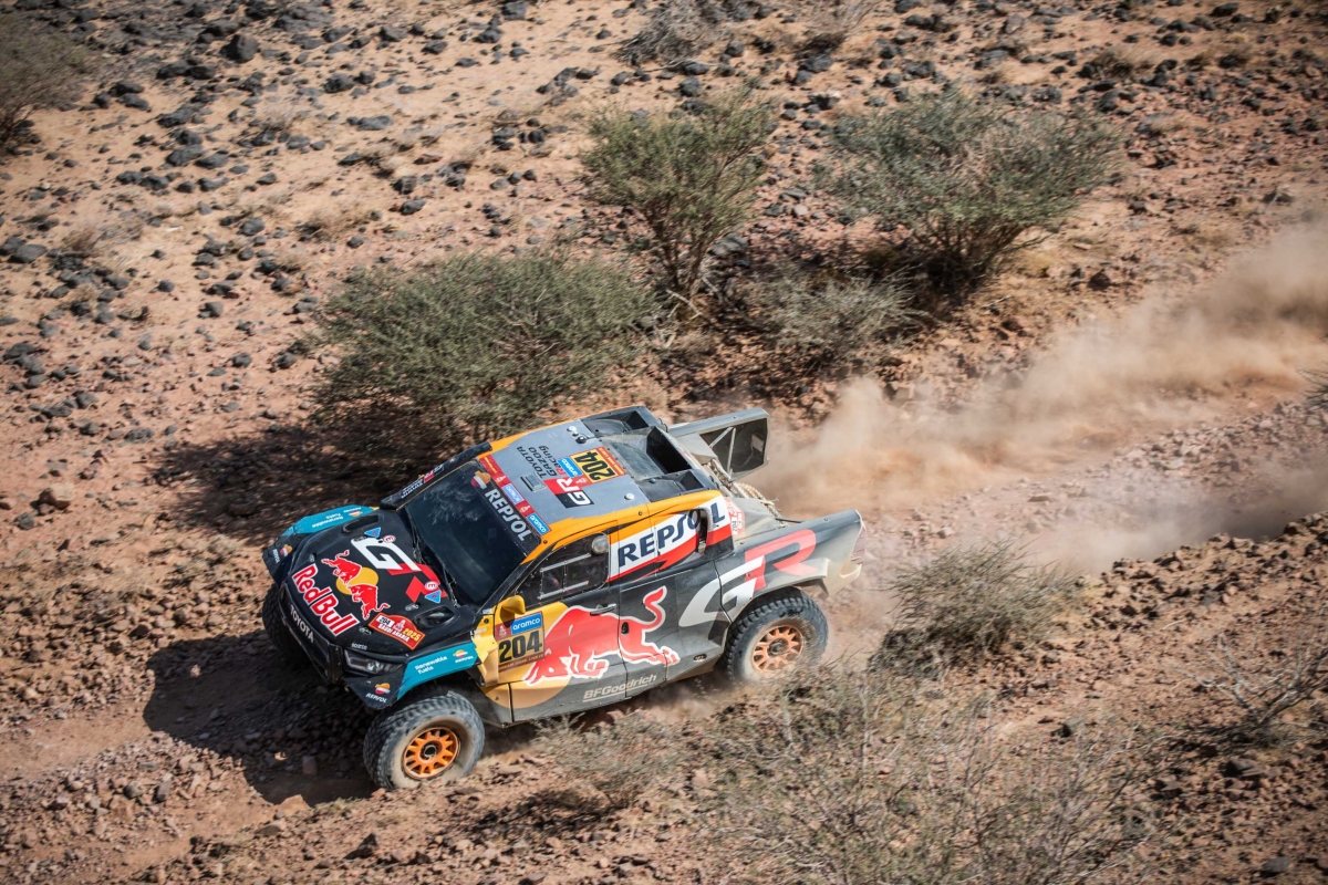 Infelizmente para o francês Sébastien Loeb, a sua busca pelo primeiro título do Rali Dakar foi afetada quando perdeu mais de uma hora depois de o seu Dacia Sandrider ter virado de lado e capotado a alta velocidade. Apesar de o carro ter sofrido danos graves, Loeb conseguiu continuar depois de a sua companheira de equipa Cristina Gutiérrez lhe ter entregue peças sobresselentes. O piloto de 50 anos explicou: “Bati num buraco que nos fez virar de lado e o carro capotou. Não houve muitos danos, mas após 50 quilómetros partimos uma barra de direção. A Cristina parou para nos dar uma, mas depois disso a ventoinha do motor da frente deixou de funcionar”.