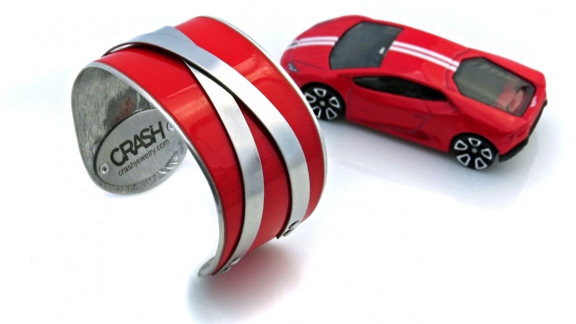 Chama-se “Crash Jewelry” é o nome diz quase tudo. A empresa criada em 2013 por Christi Schimpke, nos arredores de Los Angeles (EUA), especializou-se na criação de pequenas peças de joalharia feitas a partir de componentes de carros de luxo acidentados. Uma pulseira que já foi parte do capot de um Ferrari, um colar criado a partir de uma porta de um desportivo da Lamborghini, Porsche, Mercedes, BMW… Há mais de 100 itens atualmente no catálogo. E todos com uma particularidade: preservando a pintura original do carro.