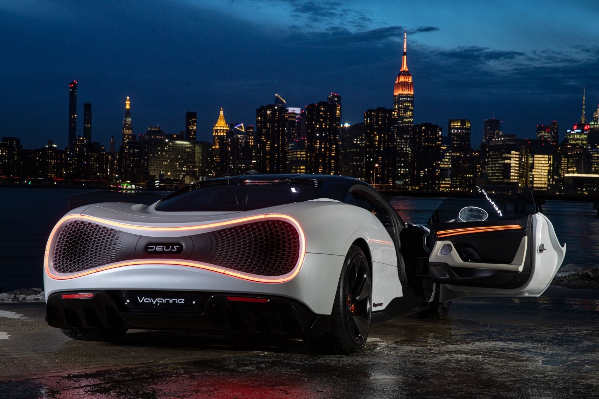 A DEUS Automobiles apresentou no Salão Automóvel de Nova Iorque o especialíssimo Vayanne (diz-se “vy-ahn”, em referência a Viena, sede da marca austríaca), um supercarro elétrico para ombrear com as maiores referências na categoria. Com 2200 CV (e 2.000 Nm), é mais potente do que Lotus Evija (2000 CV/1700 Nm) e Rimac Nevera (1914 CV/2360 Nm), ultrapassando-os também em prestações puras. Para o Vayanne, a DEUS anuncia velocidade máxima superior a 400 km/h e só 1,99 segundo para acelerar de 0 a 100 km/h.