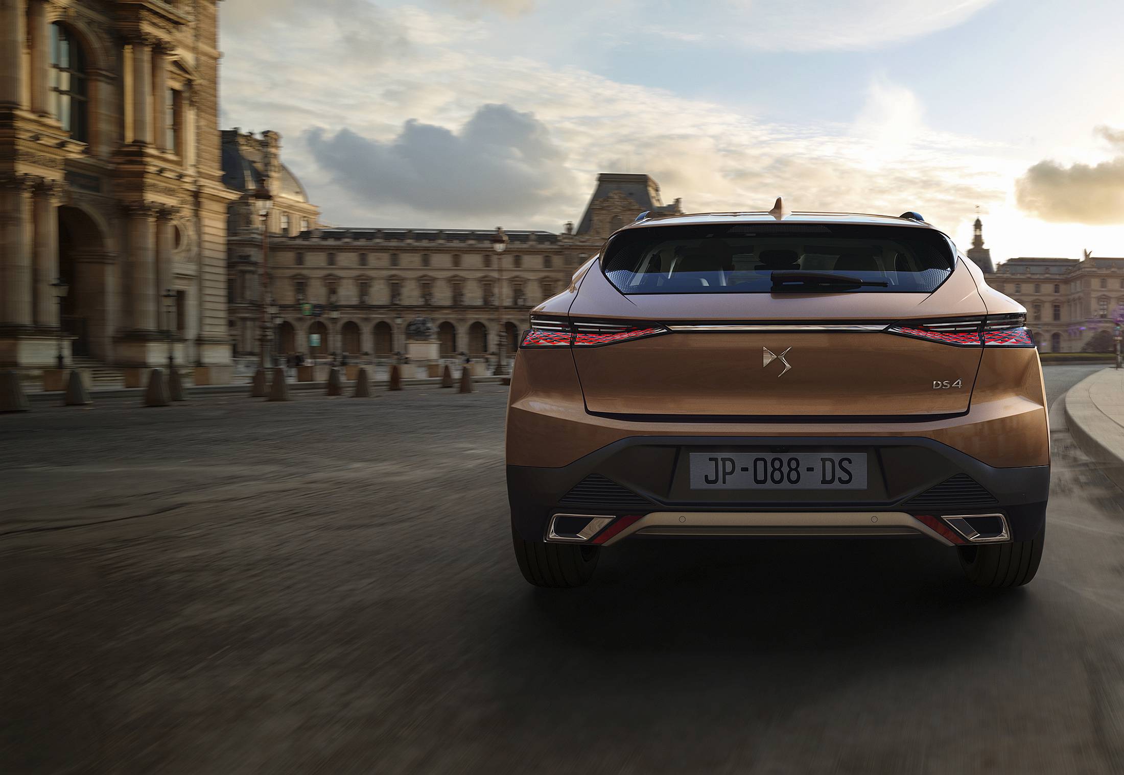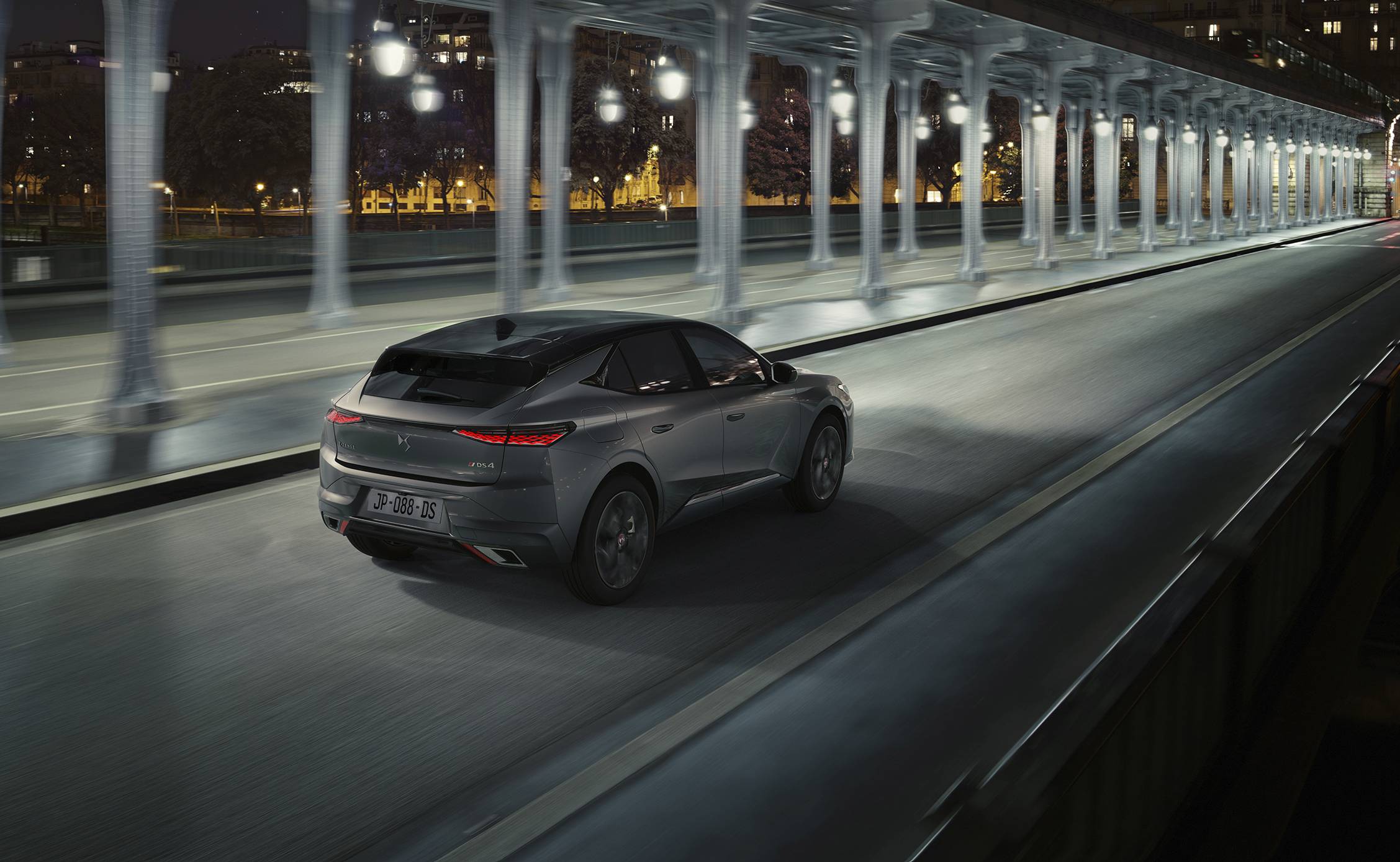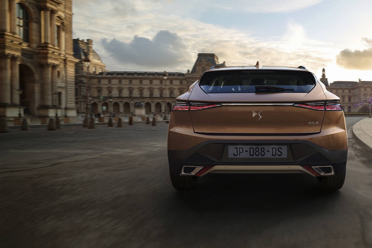 Na secção traseira, o tejadilho “desce” até ao óculo traseiro bastante inclinado, com película de esmalte que procura sublinhar a elegância do DS 4. Uma silhueta com um estilo marcado e que promove uma maior eficácia dinâmica. Para impor ainda mais o seu lado mais másculo, os guarda-lamas revelam volume generoso, com curvas e arestas vivas na carroçaria que destacam o pilar C, este marcado por um apontamento em preto brilhante, com o emblema DS Automobiles incrustado. Além disso, a traseira exibe a assinatura luminosa de nova geração, com um efeito escamado progressivo e gravado a laser.