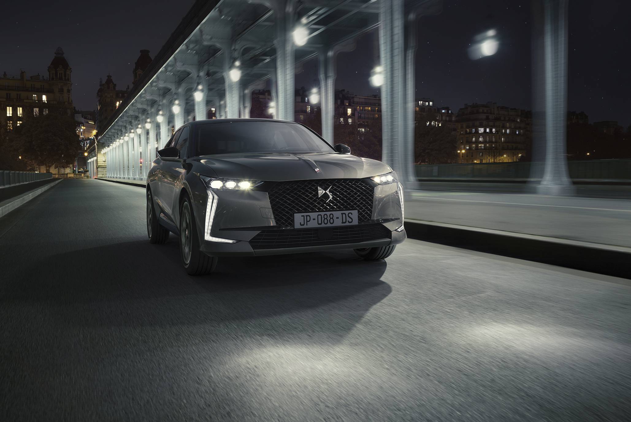 De frente, o grande destaque reside na nova assinatura luminosa. Os elegantes e sofisticados faróis contam com o sistema DS Matrix LED Vision, que combina iluminação matricial e direcional. Por sua vez, as DS Wings asseguram a ligação entre os faróis e a grelha do radiador. Dependendo das versões, esta grelha é composta por uma estrutura de duas peças, com motivos em pontas de diamante, de dimensões diferentes, que se destacam numa grelha tridimensional. Na parte superior desta, o longo capot empresta à silhueta um impulso dinâmico.