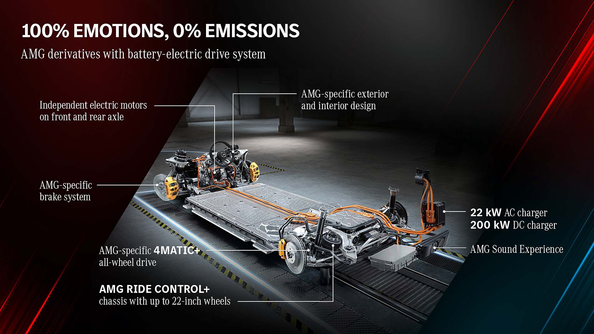Concebidos sob a base dos elétricos EQ, estes modelos da Mercedes-AMG serão versões melhoradas em termos de prestações, servindo-se de um esquema semelhante ao dos AMG produzidos hoje em dia com base nos Mercedes-Benz. Apesar de a base ser a mesma, os EQ são transformados de forma extensa na fábrica da AMG, em Affalterbach, direcionando-se para qualquer mercado em específico – potência, chassis, travões e sonoridade.
