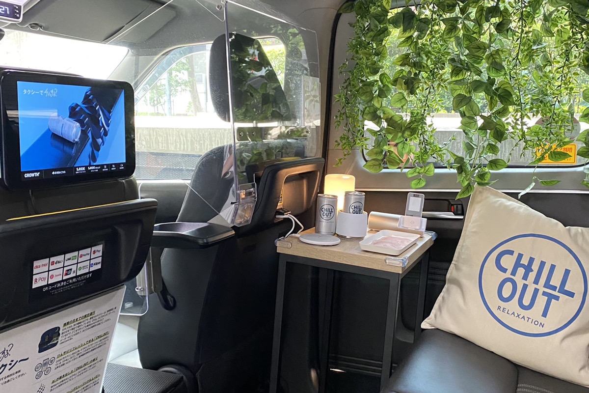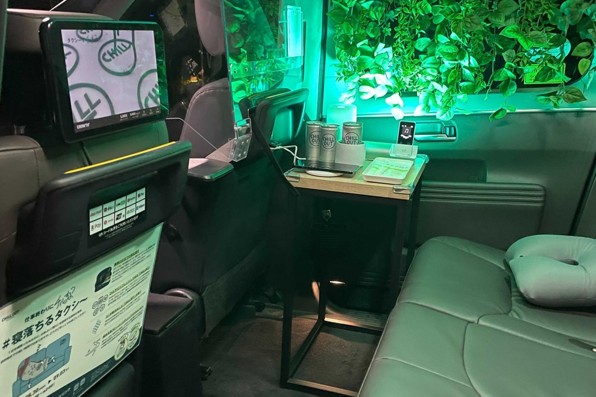 Nos lugares posteriores, reservados ao passageiro e total isolamento, há uma mesa portátil e várias bebidas de relaxamento para consumir à discrição. A decoração inclui plantas a cobrir as janelas laterais e painéis com luz ambiente. Num ecrã instalado nas costas do banco dianteiro são projetados vídeos com imagens sugestivas para ajudar a descontrair, enquanto aproveita a viagem ao som de uma música suave.