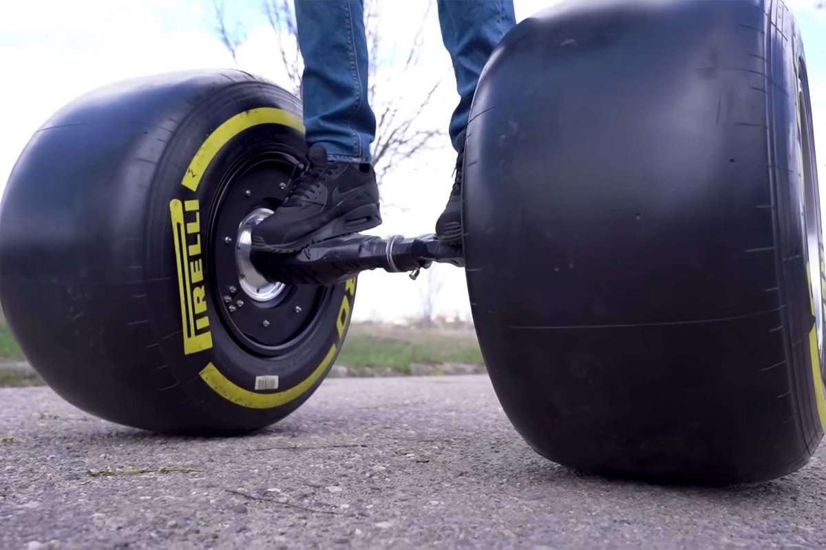 Num dos seus mais recentes videos, decidiu adaptar dois pneus Pirelli P Zero de Fórmula 1 a uma hoverboard, daquelas que se veem frequentemente a serem utilizadas pelas crianças. No video, que tem o efeito hipnotizante de o querermos ver até ao fim, podemos assistir detalhadamente ao processo de transformação.