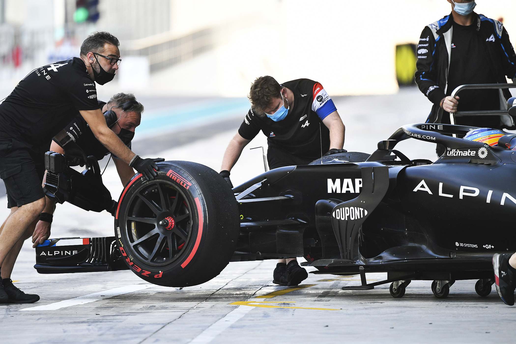 Fernando Alonso, Alpine/Renault RS18 Mule during the Abu Dhabi November testing at Yas Marina Circuit on Wednesday December 15, 2021 in Abu Dhabi, United Arab Emirates. (Photo by Mark Sutton / LAT Images)