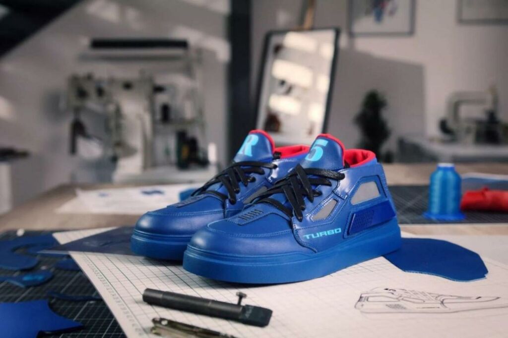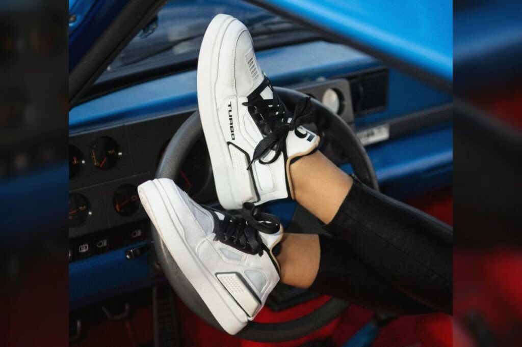 Além da letra ‘R’ bem visível na pala superior de cada sapatilha, o número 5 e a inscrição ‘Turbo’ também fazem parte da decoração, em que não faltam pequenas inserções laterais que simbolizam as tomadas de ar em forma de diamante do carro original.