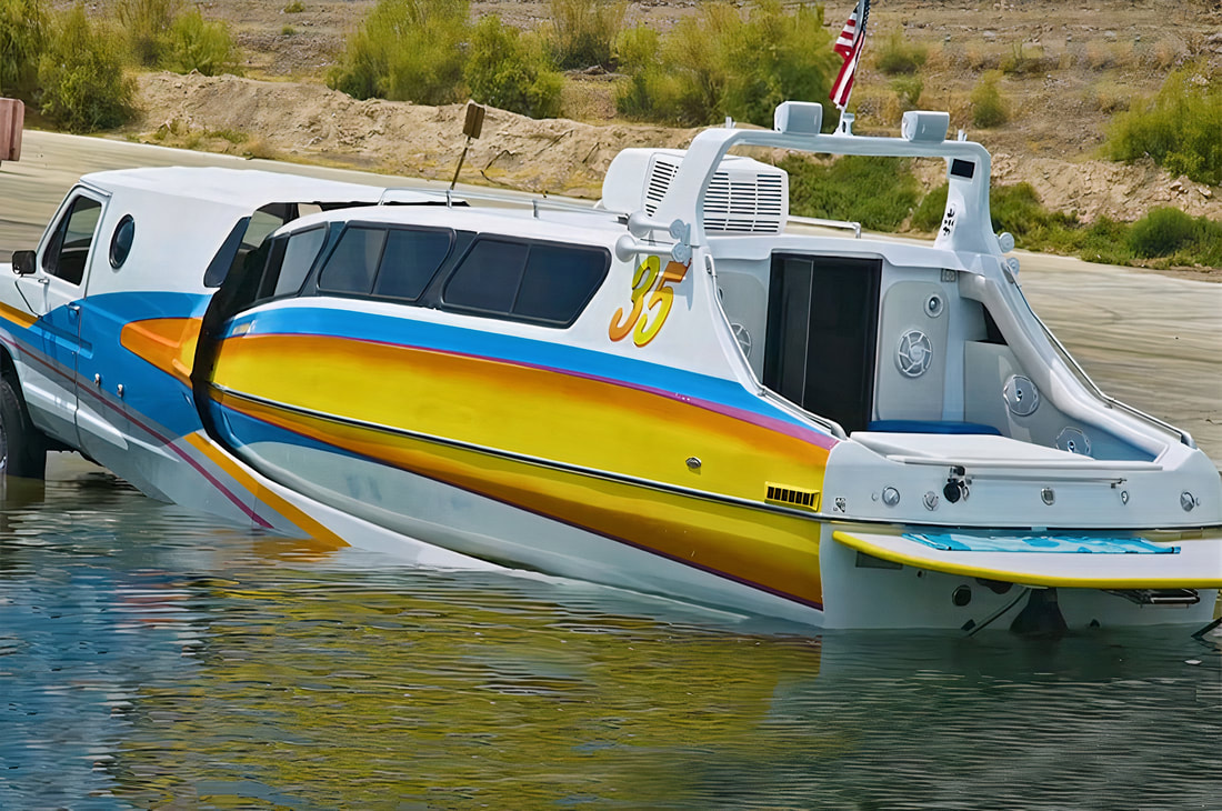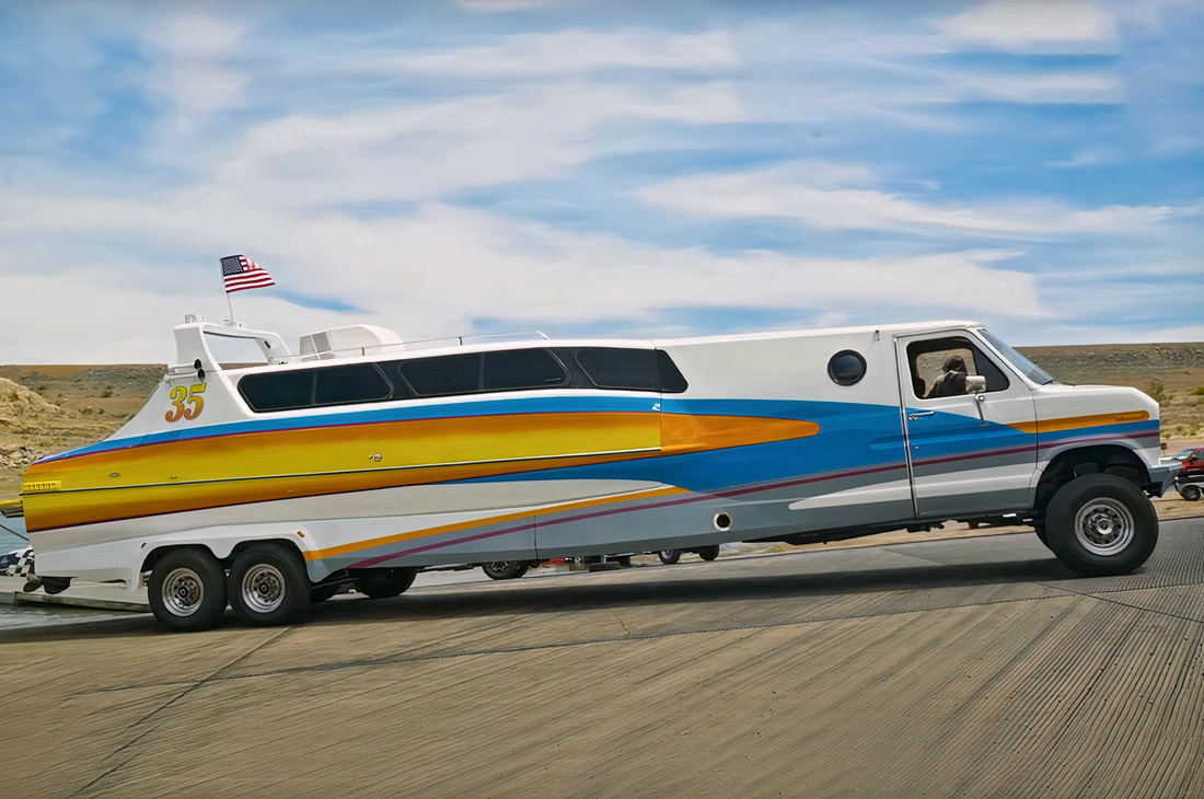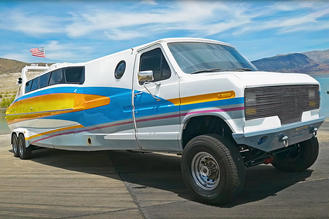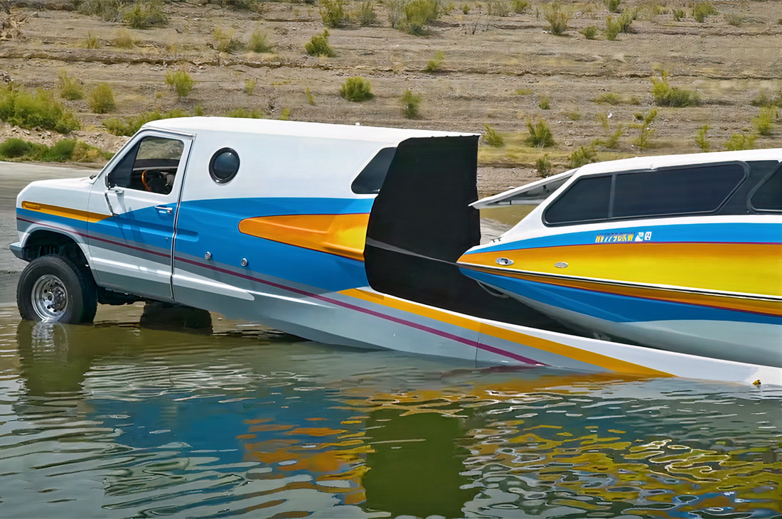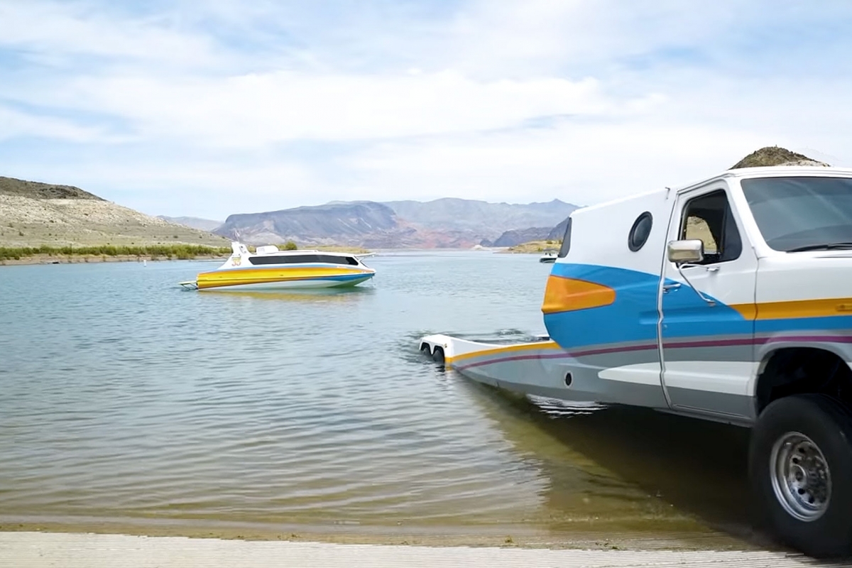 A base mecânica é a popular Ford Econoline, esticada na traseira para acolher basicamente um atrelado de eixo duplo onde está acoplado um barco de casco raso com 8,5 metros, equipado com motor um Mercury Marine DFI a debitar 200 CV de potência. Em estrada, conduz-se como qualquer autocaravana. Chegando à praia, à beira de um lago ou de um rio, basta fazer deslizar a outra metade para dentro de água.