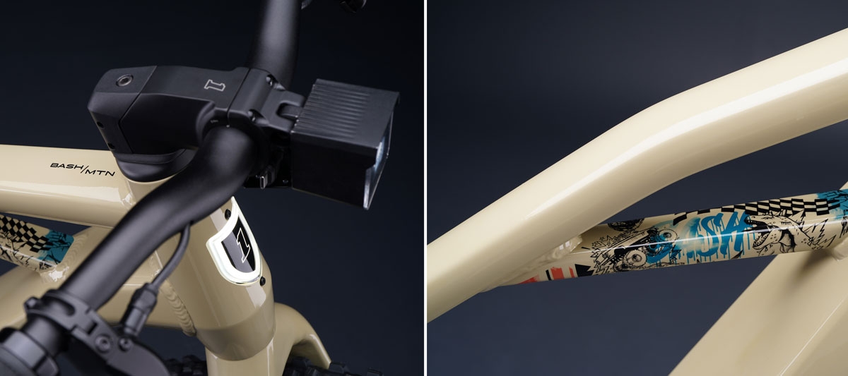 Dispensa suspensões e também não tem trasmissão. “Menos é mais”, afirmou Aaron Frank, responsável da submarca Serial 1. “Essa é a promessa da BASH/MTN. Sem suspensão exigente para ajustar, sem um transmissão trabalhosa para ajustar – apenas duas rodas, uma marcha e um propósito: oferecer a conexão mais direta entre você e o trilho. Quanto menos tecnologia para manter, mais poderá concentrar-se em aproveitar cada pedalada”, acrescentou.