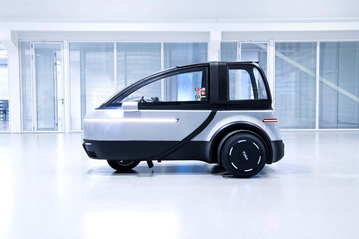 Pioneiro de uma nova gama de veículos muito práticos e ecológicos para conduzir na cidade, o Tuga é um carro 100% elétrico com três rodas, dois lugares, projetado sobre uma plataforma modular para assumir duas distintas de carroçaria, de ‘cockpit’ aberto ou fechado.