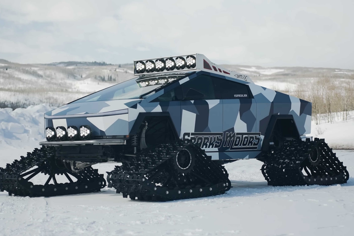 O Youtuber @supercar_ron já tinha utilizado uma Tesla Cybertruck como rampa para os seus videos de acrobacias de bicicleta. Agora, com a ajuda da Sparks Motors decidiu montar umas lagartas para neve na pick-up elétrica.