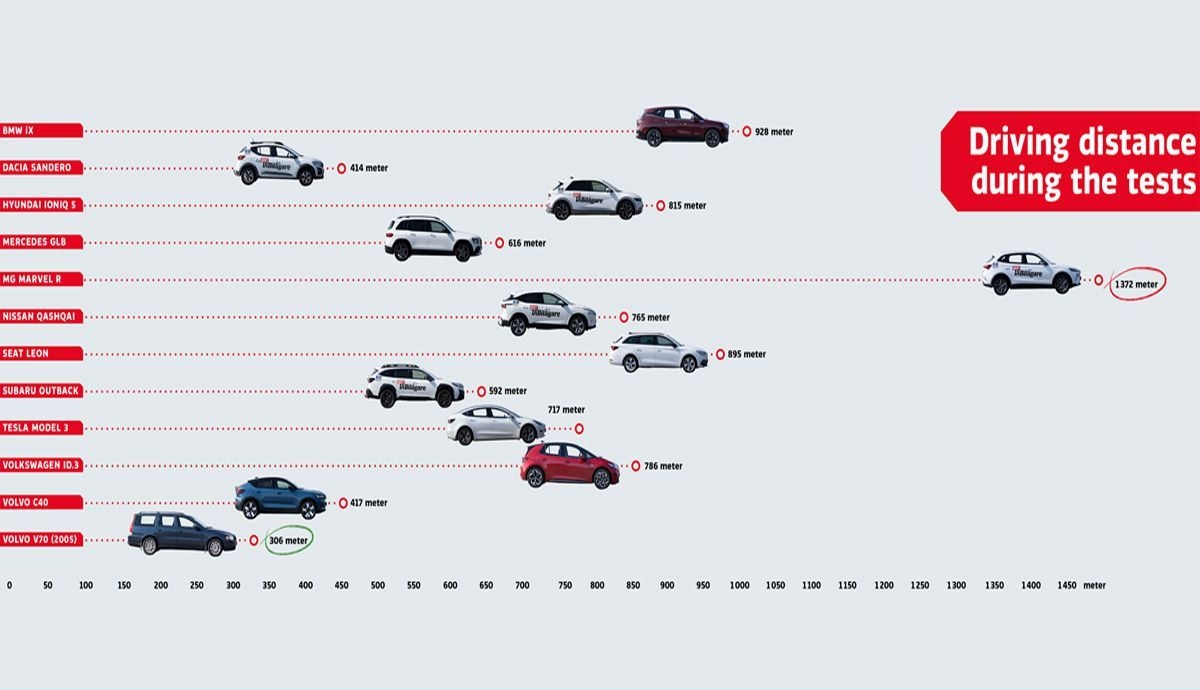 Os resultados são esclarecedores, com franca vantagem para o modelo “analógico”, Volvo V70 com mais de quinze anos. Naquele automóvel o condutor necessitou de 10 segundos e 300 metros para concluir as quatro tarefas propostas.