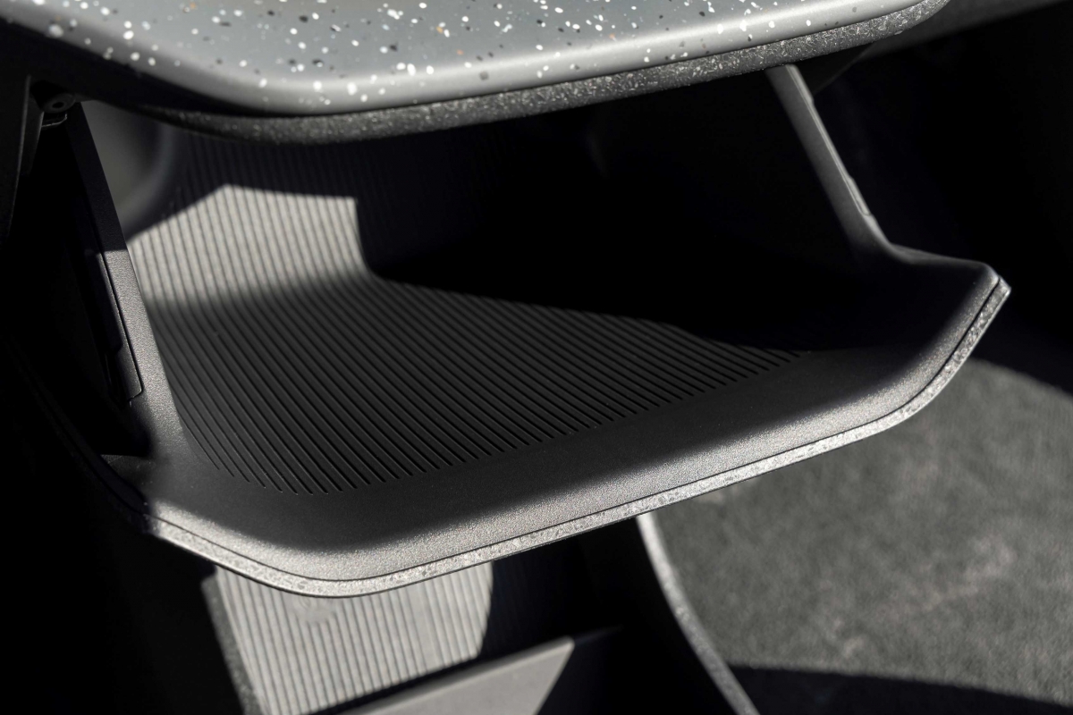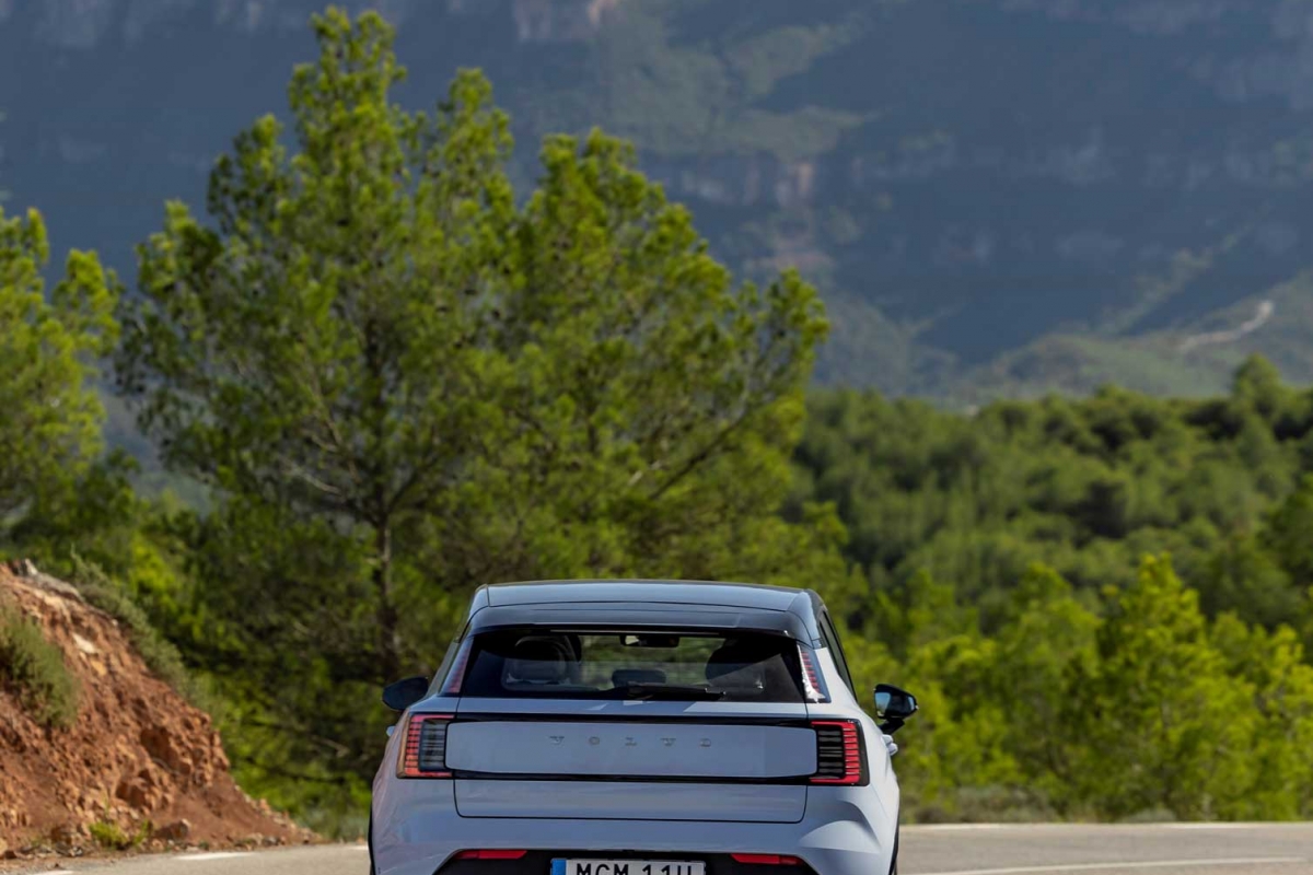 Para entrar no EX30 basta aproximar o smartphone do pilar central para abrir as portas. Já no interior, os tradicionais clientes nacionais da marca sueca podem sofrer um choque. O grau de despojamento é quase monástico, com uma profusa utilização de materiais fabricados a partir de plantas, como o linho e o plástico reciclado. O resultado é a existência de superfícies suaves ao toque, e outras duras, em locais onde não se espera, como no tabliê e nas portas. De resto, há uma total ausência de botões, quando até os comandos para os vidros laterais foram deslocados das portas para a consola central. Existe um comutador que permite escolher se queremos controlar os da frente ou os traseiros.