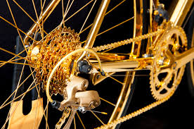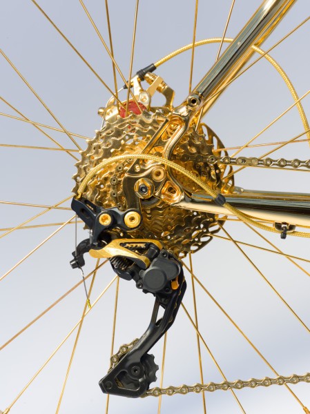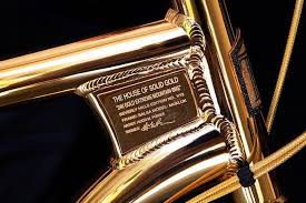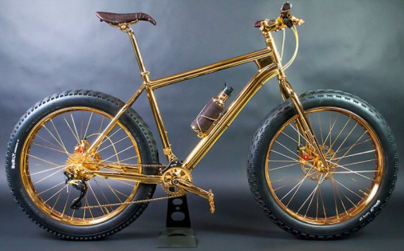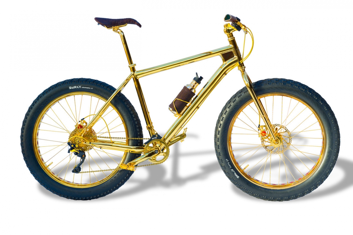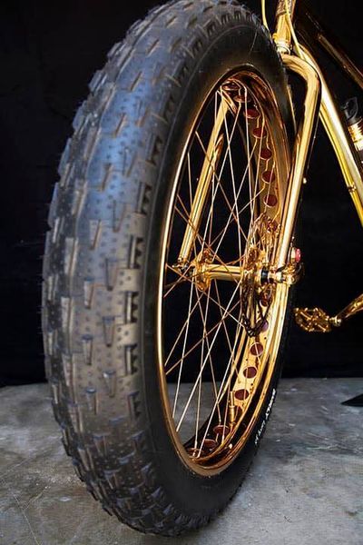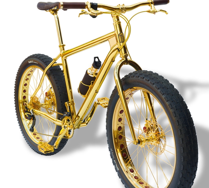 Conhecida apenas como ‘Gold Fat Bike’, a bicicleta desenhada por Hugh Power, um dos principais obreiros das criações mais excêntricas da House of Solid Gold, empresa que se dedica a fabricar versões em ouro maciço dos objetos mais insuspeitos de todos os dias, tem direito a designação mais pomposa.