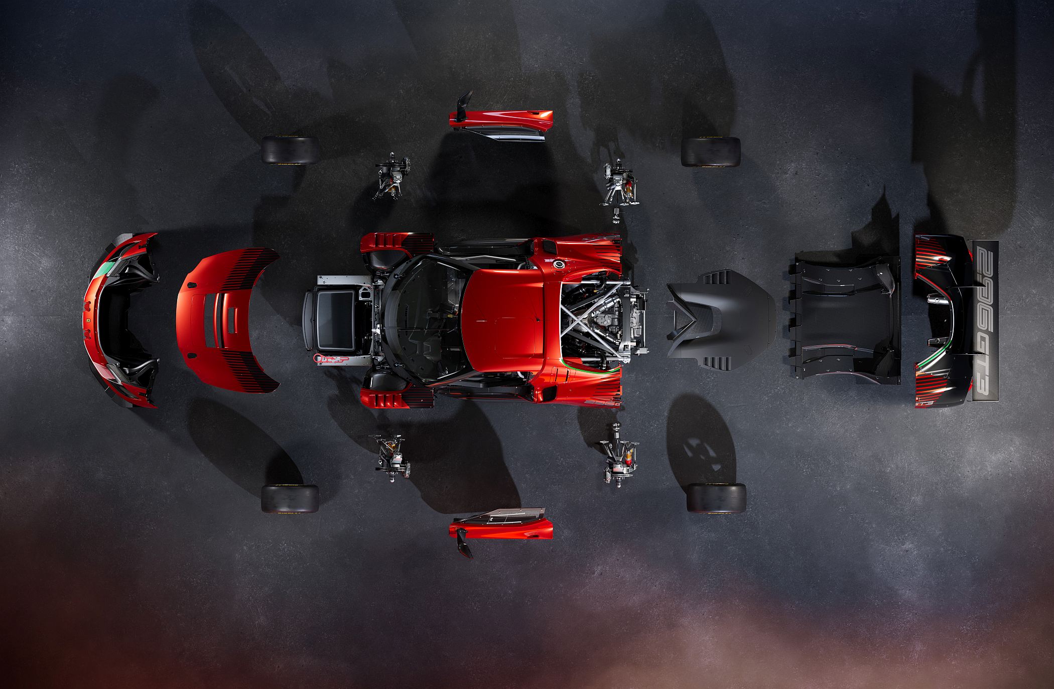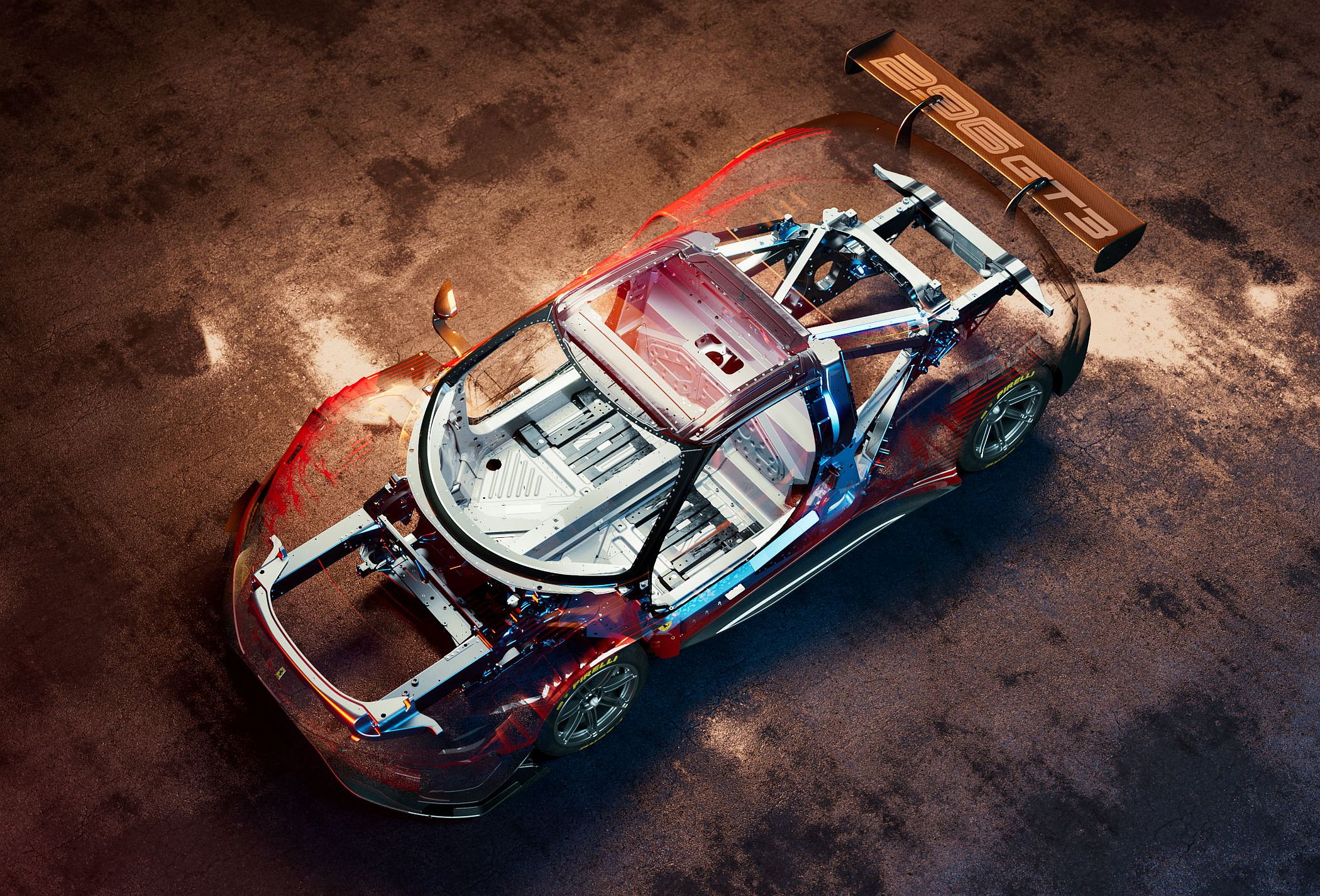 Face ao modelo de estrada e uma vez que não tem a componente elétrica, o motor está em posição mais central e baixa, o que ajuda a melhorar a distribuição de peso, ao mesmo tempo melhorando a rigidez torsional em 10% face ao 488 GT3. Os engenheiros da Ferrari trabalharam em proximidade com os parceiros para afinar diversos componentes específicos da estrada para as pistas, procurando obter performances de ponta, margem de utilização e fiabilidade, tanto para as corridas ‘sprint’, como de ‘endurance’, como são os casos das corridas de 24 Horas de Le Mans ou de Daytona. Neste sentido, trabalhou-se também na redução dos consumos para permitir uma maior amplitude nas estratégias de corrida.