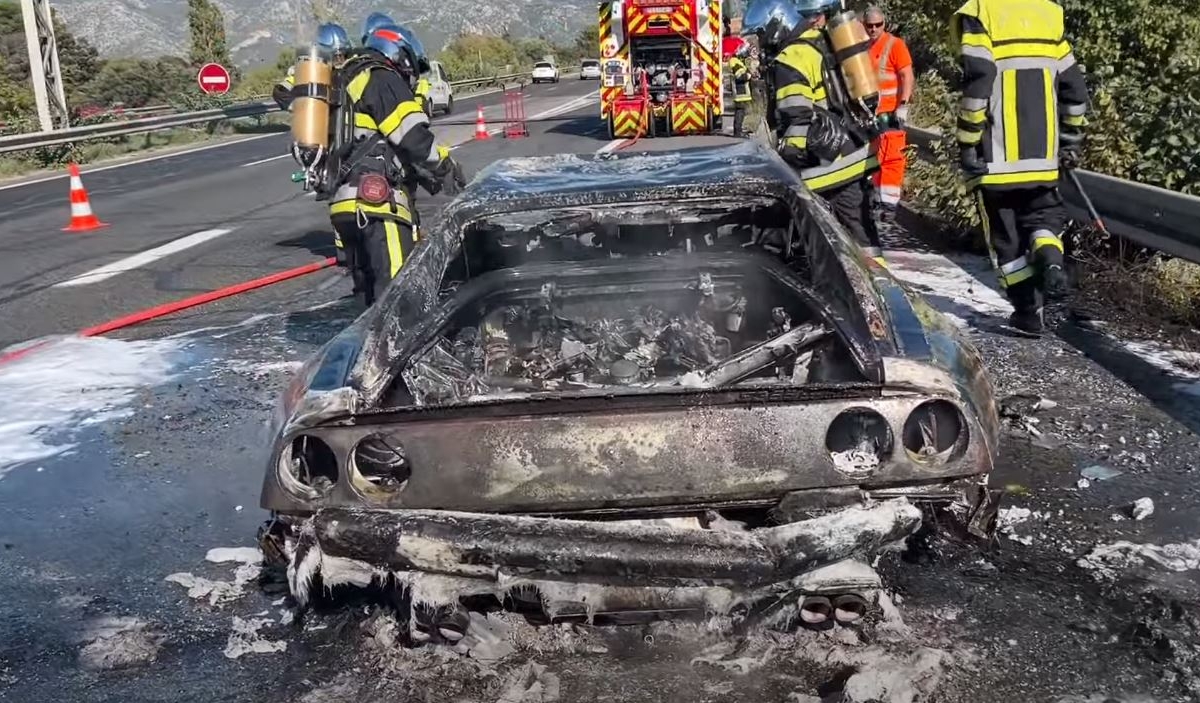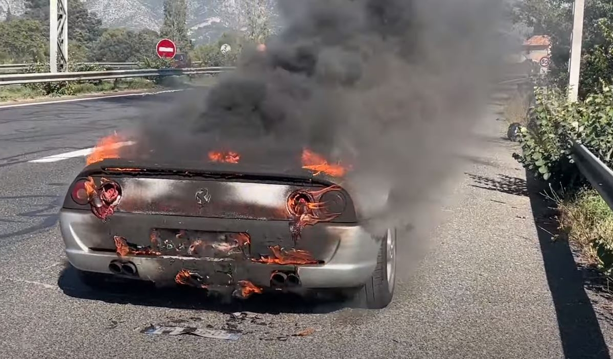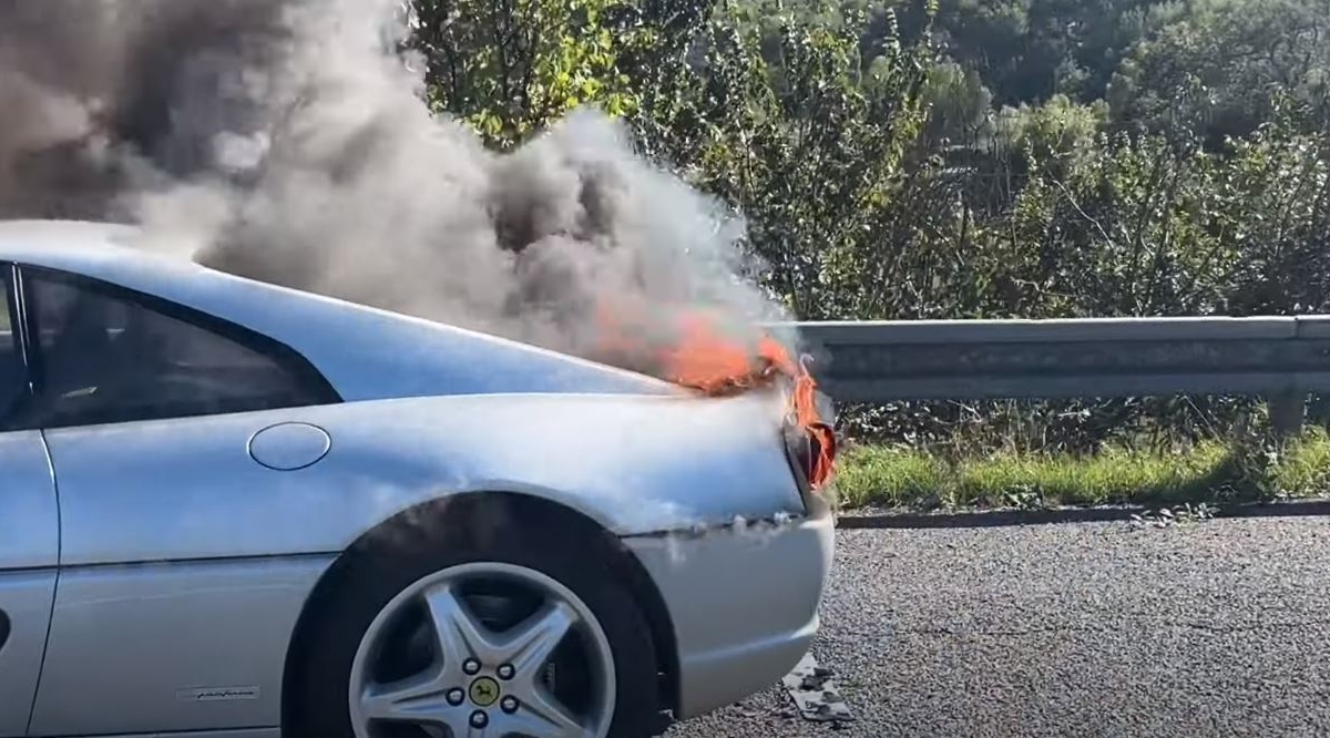 Ao que tudo indica, o atual proprietário, com o comprador no lugar do pendura, conduzia o Ferrari na autoestrada em direção a uma oficina local, onde iria fazer um último ‘check-up’, quando o carro começou a fumegar, tendo acabado mesmo por pegar fogo.
