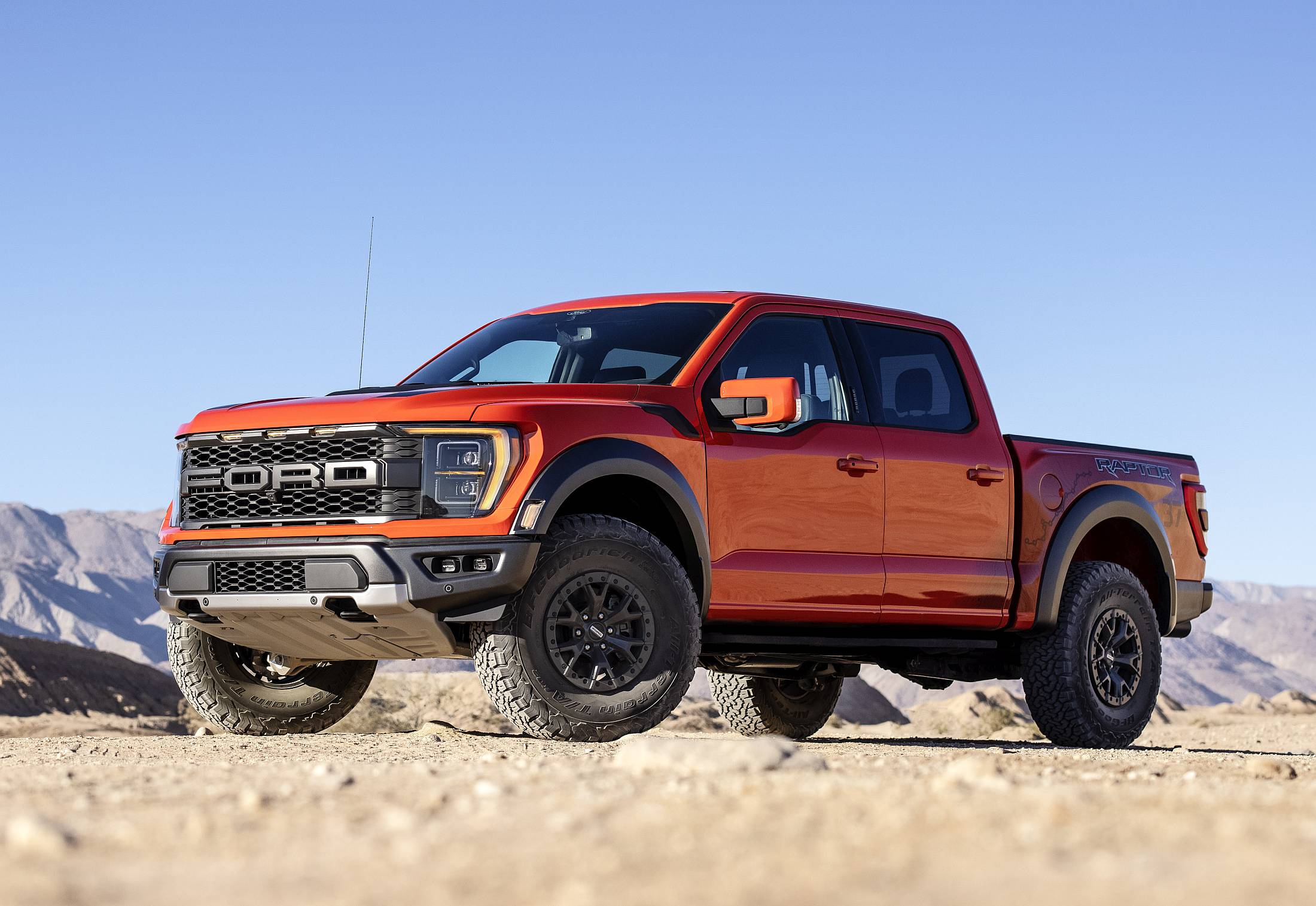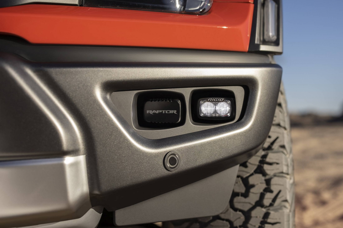As suas dimensões já impactantes foram reforçadas na linha Raptor, com grelha escurecida, capot mais elevado e novos faróis que oferecem um visual mais musculado, não dispensado as já tradicionais proteções inferiores. Os para-choques nas duas extremidades são feitos de aço, para maior durabilidade e resistência, sendo o traseiro específico para uma maior altura ao solo e com posicionamento alterado das saídas de escapes.