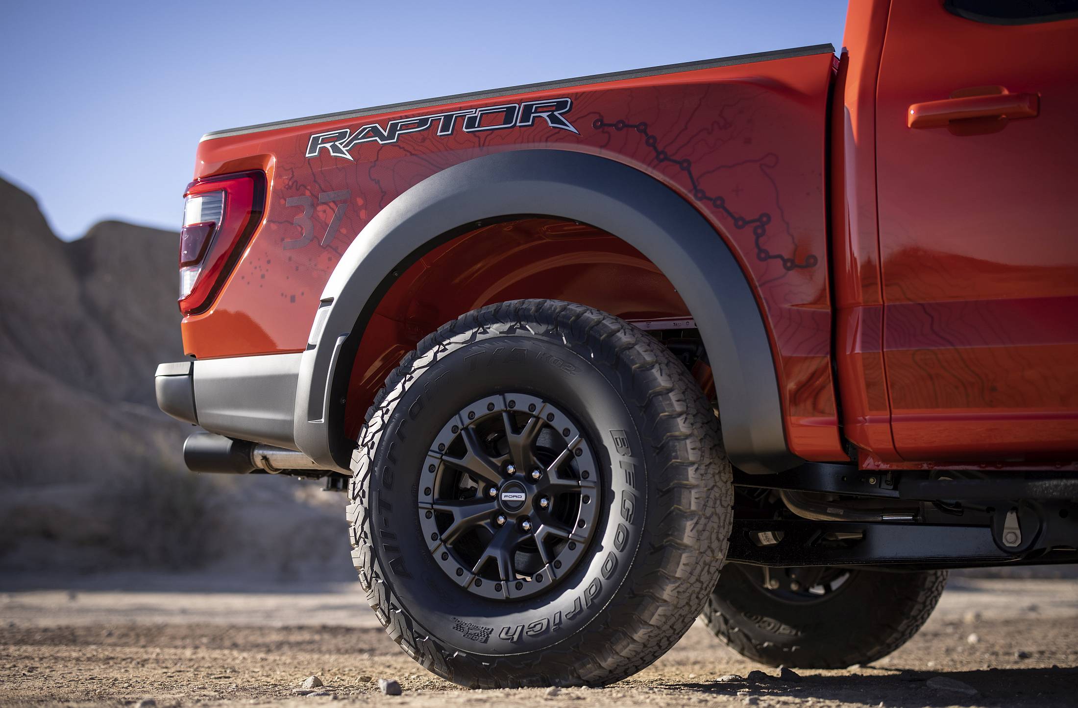 A comprovar a sua robustez, esta pick-up pode receber pneus de 35 ou 37 polegadas, fornecidos pela BF Goodrich, sendo os maiores pneus alguma vez aplicados numa pick-up considerada ligeira pela Ford. O chassis foi totalmente reformulado, sendo feito em aço para maior rigidez estrutural e uma capacidade fora de estrada robustecida pela oferte de suspensão pneumática. Atrás, apresenta agora esquema de suspensão multilink de cinco braços para maior confiança na condução, seja na estrada, seja em pisos rochosos.