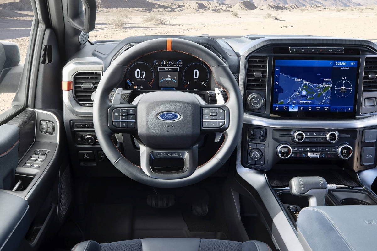 De forma curiosa, o Raptor recorre também a uma tecnologia que parece inspirada nos veículos elétricos, mais concretamente a tecnologia de pedal único para a condução. Neste Ford, o pedal do acelerador pode também servir para controlar o movimento fora do asfalto, impulsionando ou travando consoante a necessidade. Em paralelo, permite a ativação do modo ‘Trail Control’, que funciona como o cruise control mas fora de estrada, mantendo a velocidade constante sem necessidade de acelerar.