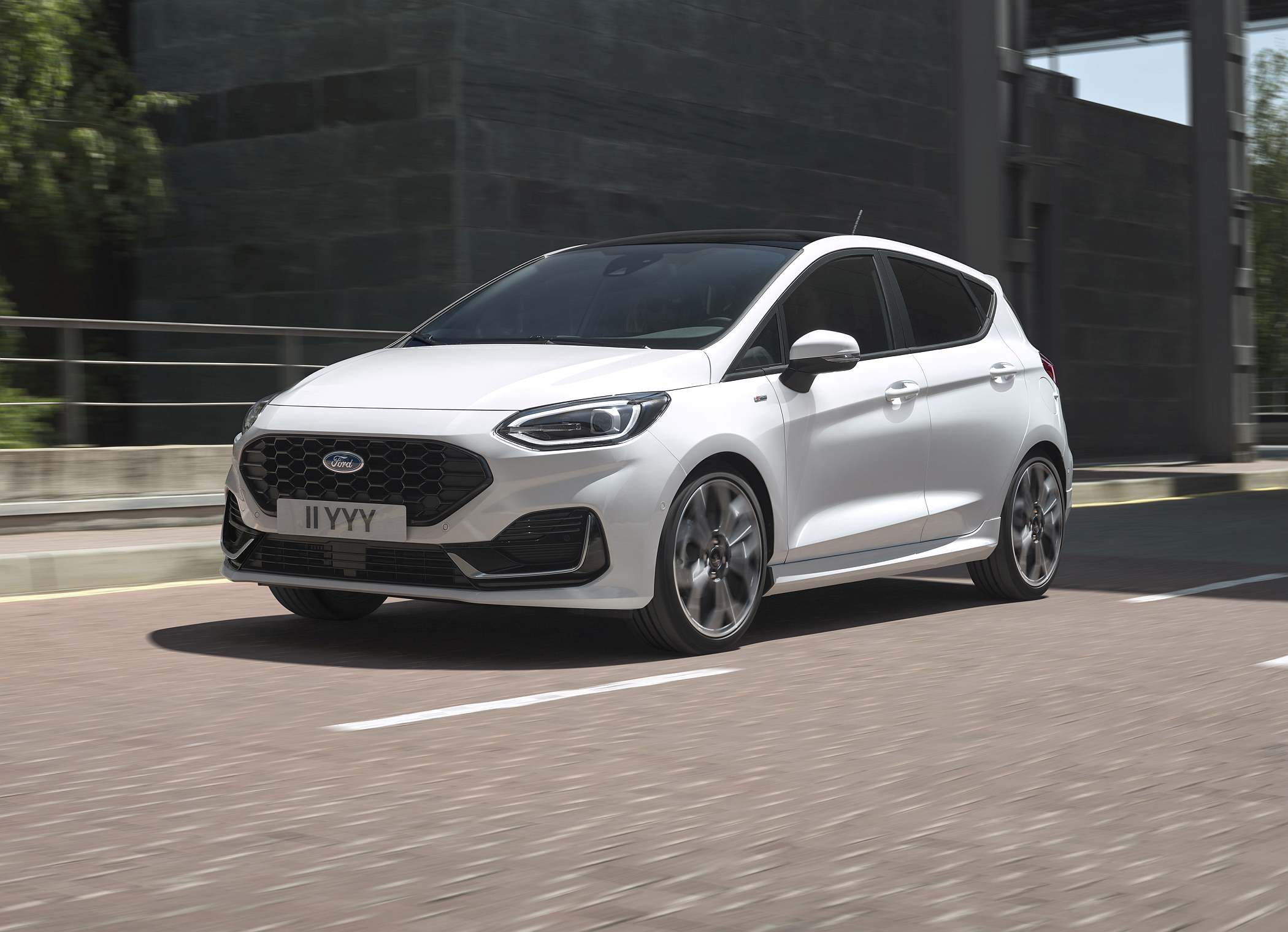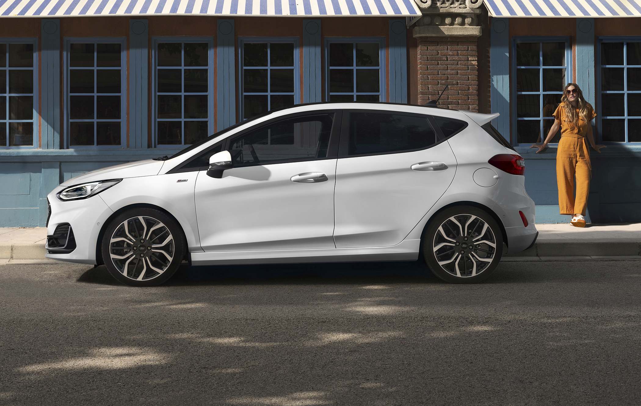Tem por base a arquitetura B da Ford – também utilizada pelo SUV compacto Ford Puma –, continuando a oferecer variantes de três e de cinco portas. Visualmente, o renovado Fiesta demarca-se pelo design mais expressivo, havendo agora uma diferenciação maior entre diferentes versões. O novo estilo exterior em toda a gama inclui um design de capot que eleva a altura da secção dianteira, combinado com grelhas superiores maiores. O emblema da Ford está agora alojado no interior da grelha, em vez de estar colocado à face entre o capot e grelha. Na parte traseira, os farolins de série recebem novos contornos pretos para um aspeto mais sofisticado, enquanto os faróis traseiros em LED, disponíveis em opção, são completados com um acabamento exterior Premium Black.