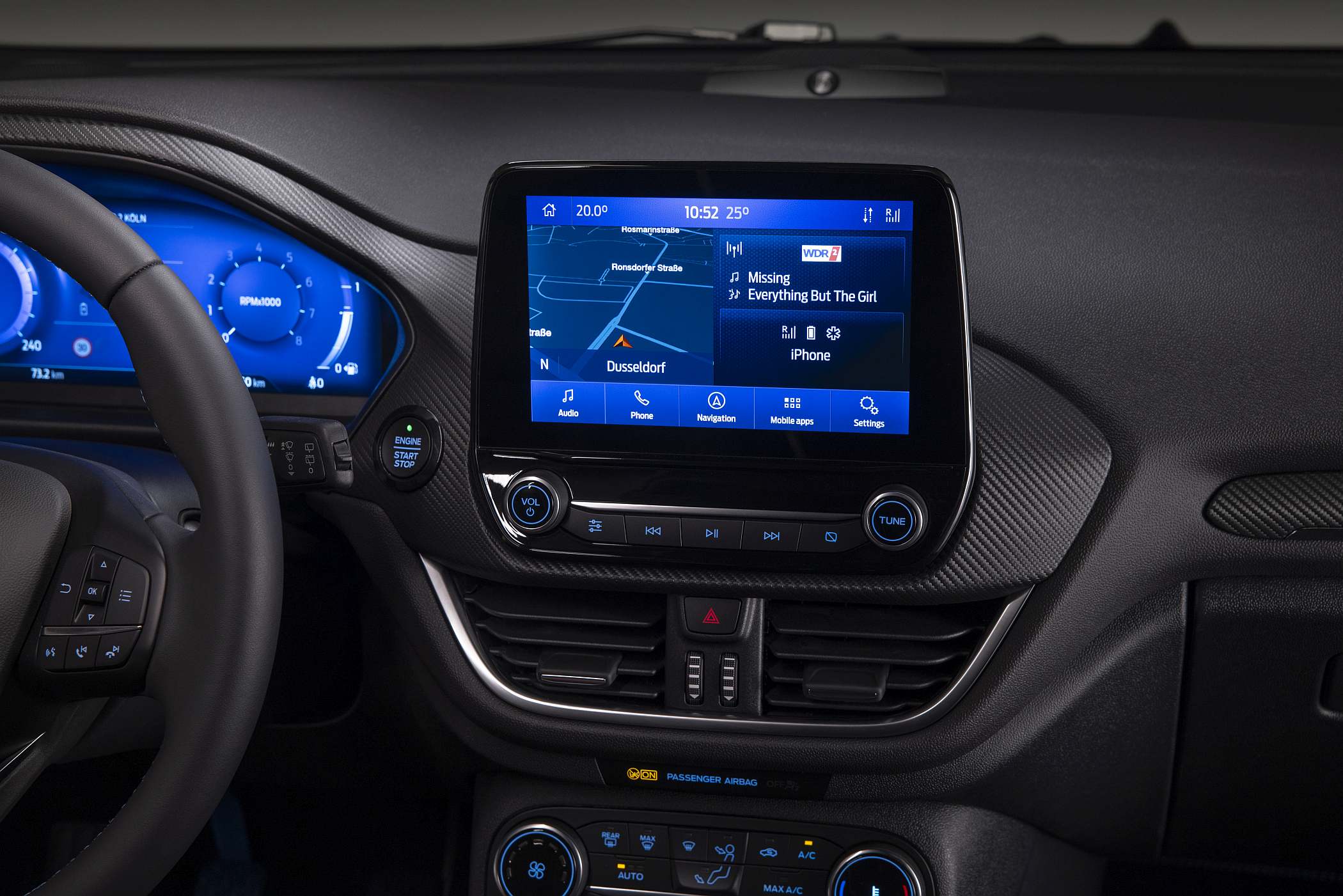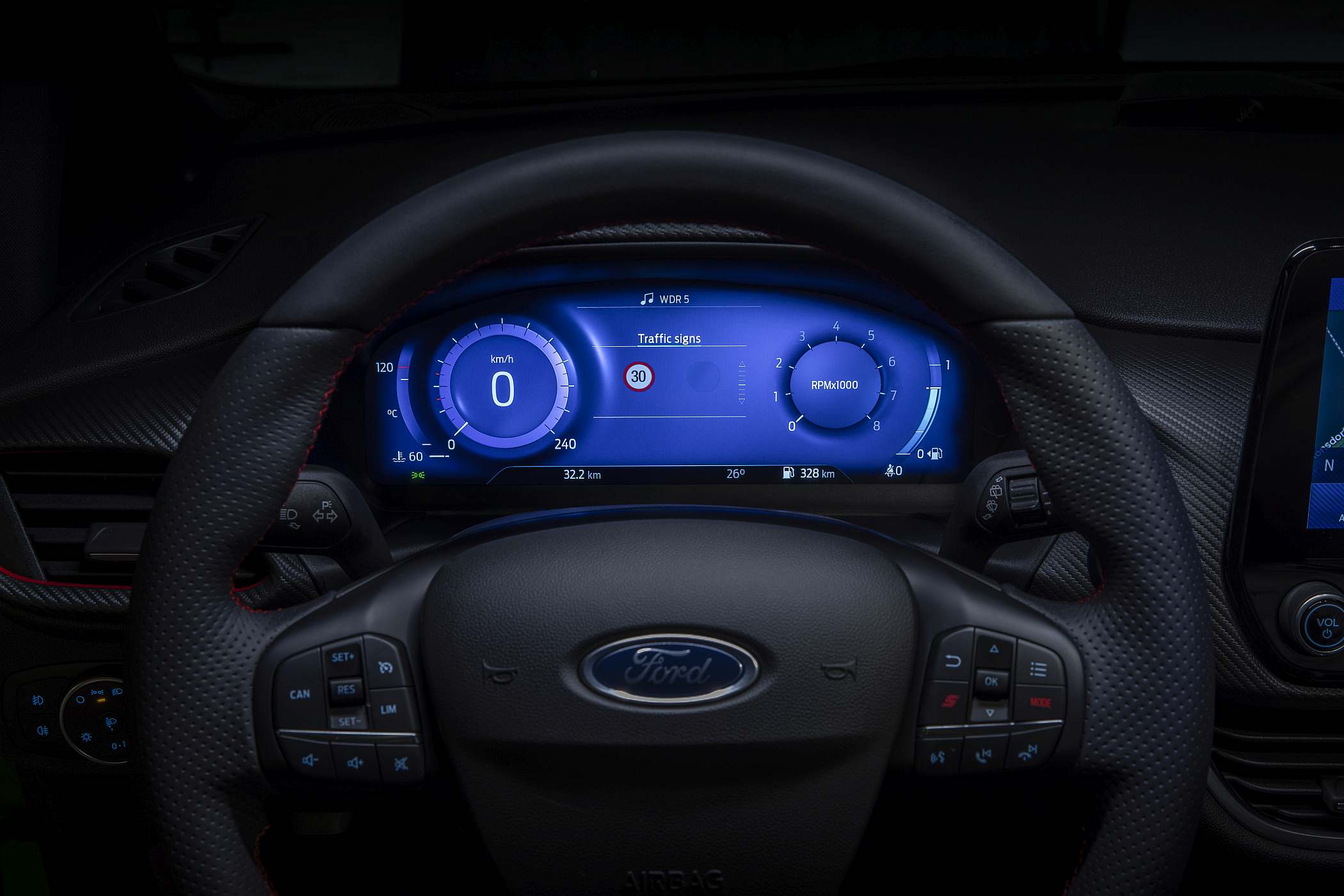 O novo Fiesta introduz também um painel digital de instrumentos com 12.3 polegadas que ajuda os condutores a manterem-se informados, sendo totalmente configurável pelo condutor. Consoante os modos de condução escolhidos, o painel apresenta temas exclusivos e uma área específica para informações prioritárias, como tecnologias de assistência à condução. Nas tecnologias de assistência à condução, passa a dispor de Informação de Perigo na Via e de Alerta de Sentido Proibido.