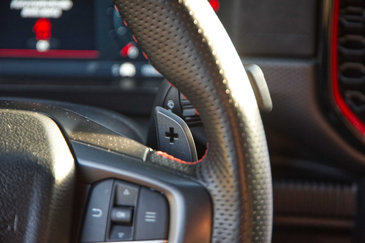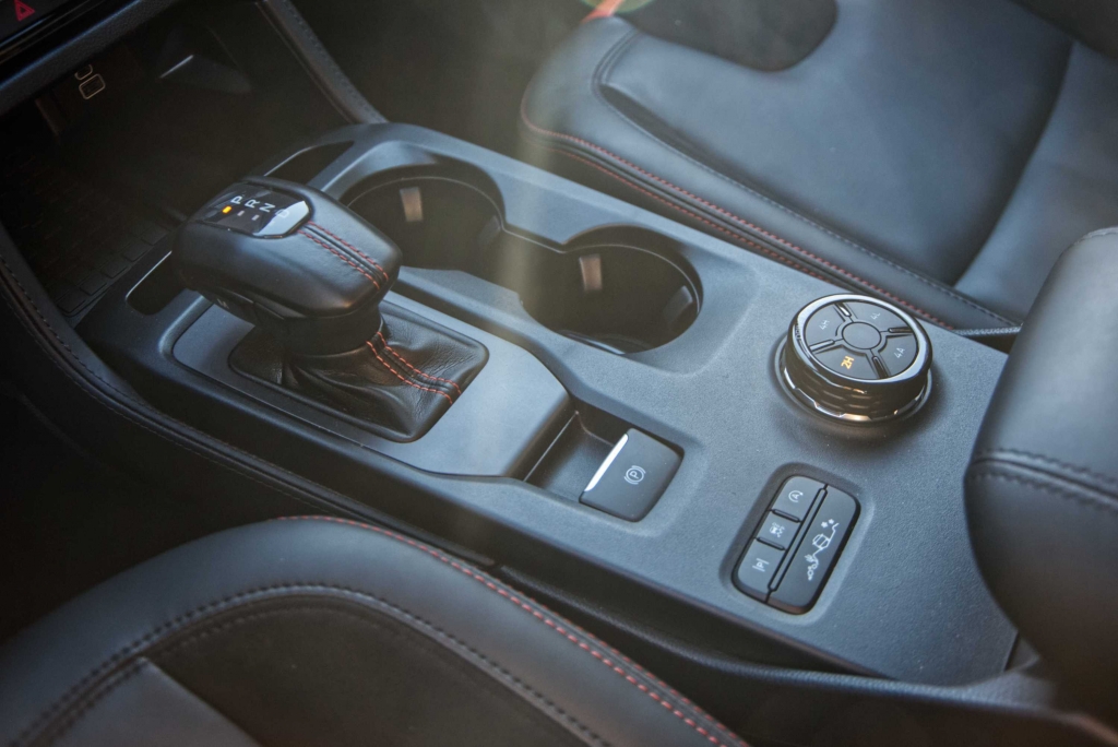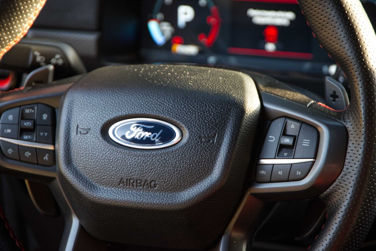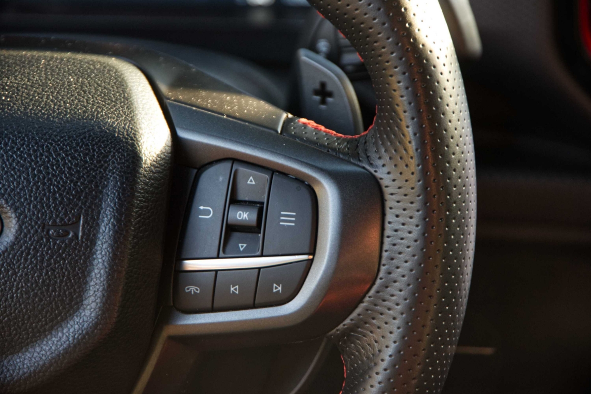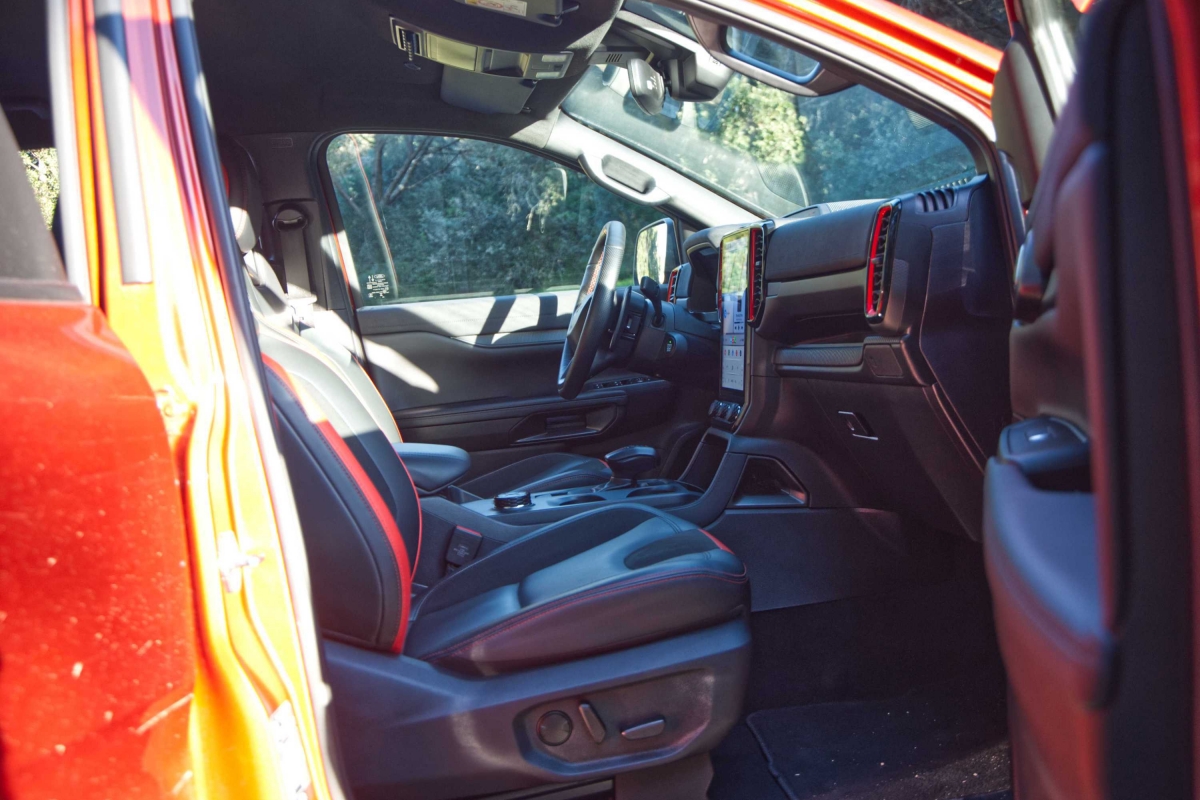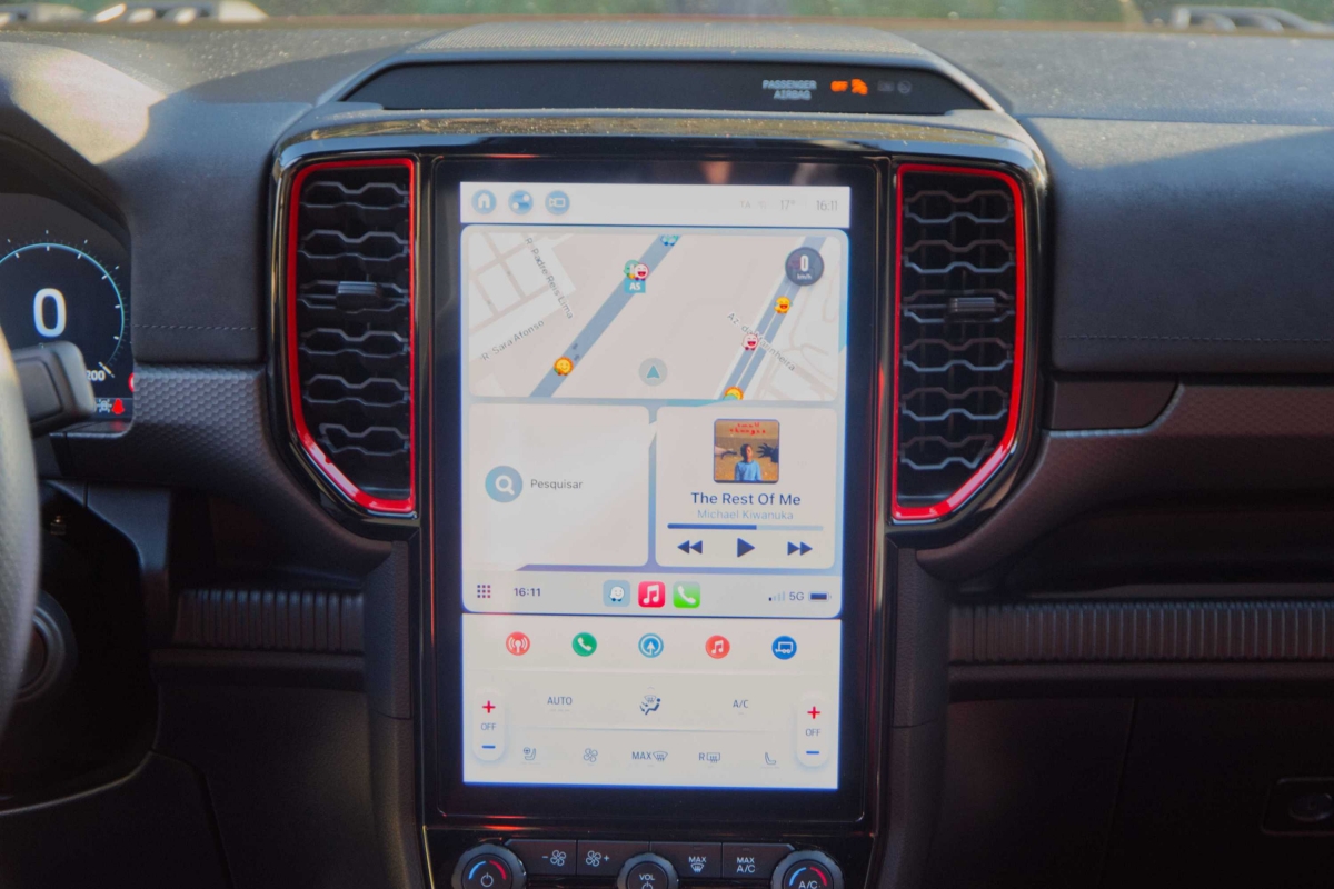 Seria de esperar que uma pick-up com suspensão alta e equipamento específico para todo-o-terreno, como a Ranger Raptor, fosse difícil de conduzir durante as tarefas mundanas do dia a dia, mas não é esse o caso. Apesar de ter sido construída para utilização fora de estrada, a Ranger Raptor é surpreendentemente refinada em estradas pavimentadas. A caixa automática de 10 velocidades tem um funcionamento suave, tanto em autoestrada como em cidade. O controlo de velocidade de cruzeiro adaptativo e o assistente de manutenção na faixa de rodagem funcionaram bastante bem. Os botões montados no volante exigiram apenas um simples olhar para acionar os sistemas. Já a resposta do ecrã de infoentretenimento aos nossos comandos, foi por vezes lenta e não ficámos fãs dos controlos da climatização, divididos entre o ecrã tátil e botões físicos.