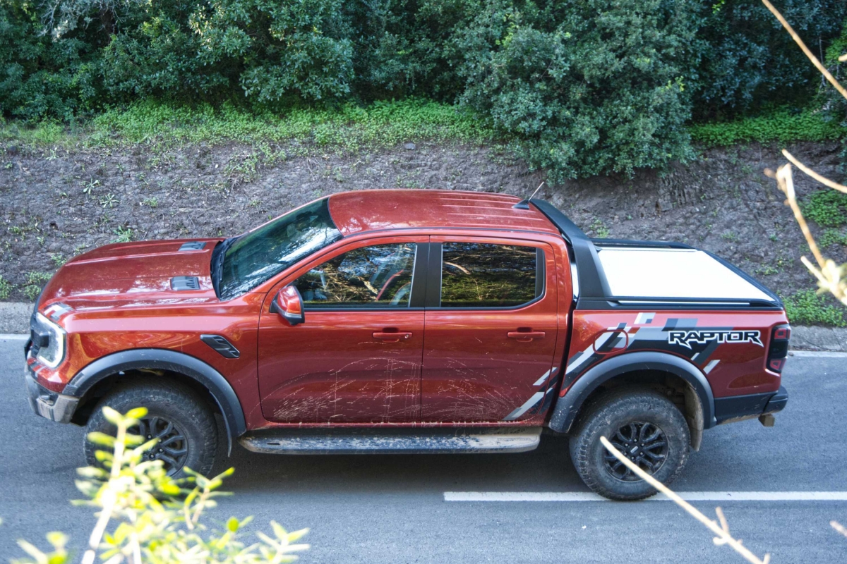 Para os norte-americanos a Ford Ranger Raptor é uma pick-up de tamanho médio, quando comparada com a maior F-150. Mas na Europa, e especialmente em Portugal, um veículo com 5,35 m de comprimento, 2,0 m de largura e 1,92 m de altura faz com que quase todos os outros à sua volta pareçam miniaturas.