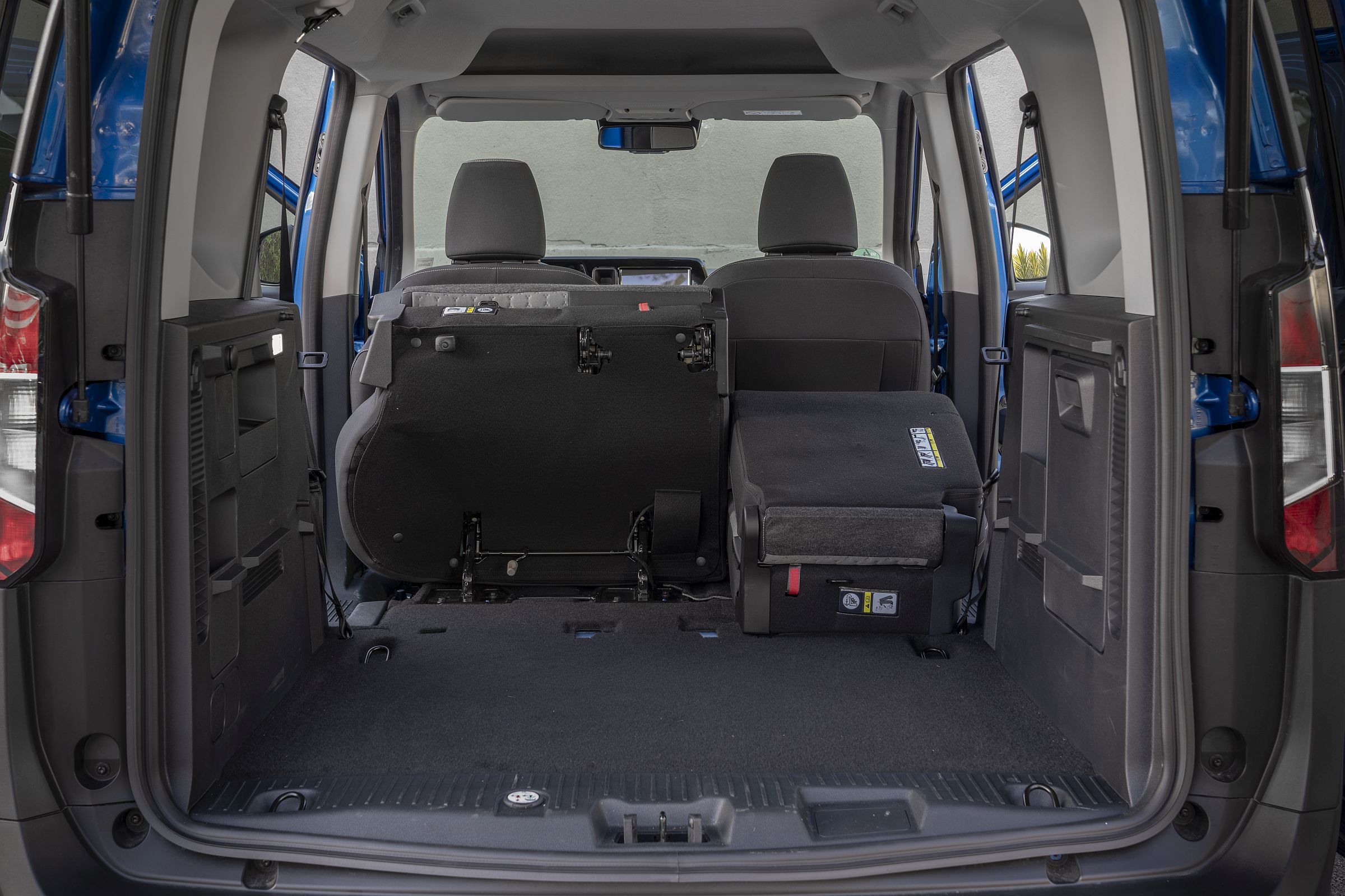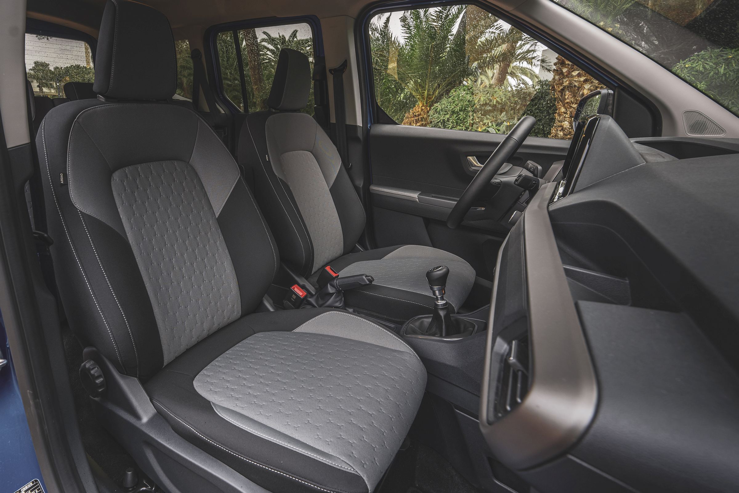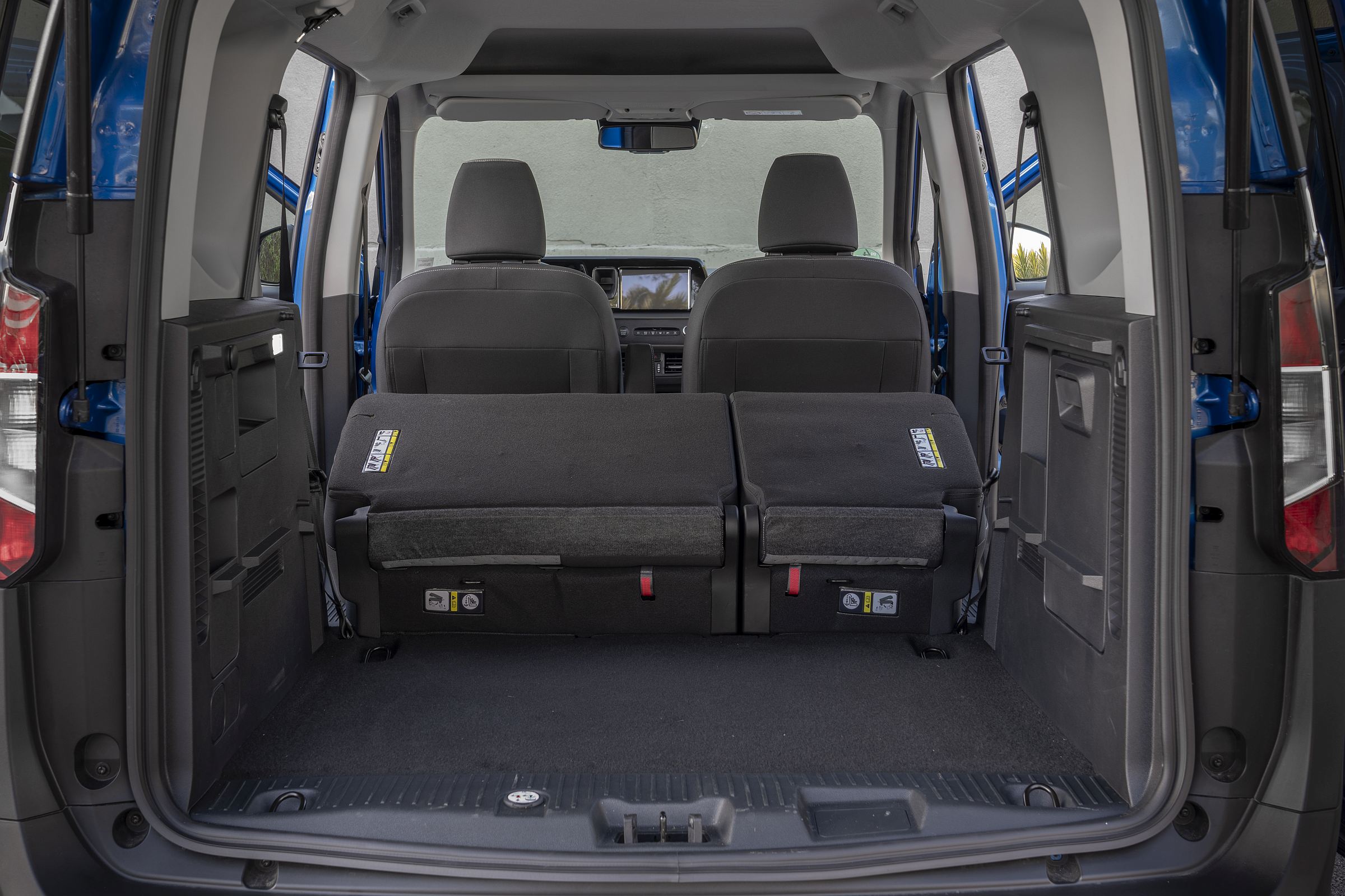 Cada Tourneo Courier vem equipado com um banco traseiro de três lugares, com mais espaço para a cabeça e para os ombros do que o modelo que substitui. Os bancos são bipartidos 60/40 e podem ser rebatidos e virados para facilitar o transporte de objetos até aos 1,4 metros de comprimento. Esses bancos são parcialmente revestidos em tecido técnico macio, de fácil limpeza, que não é afetado por roupa molhada e que não é frio ao toque no inverno. Para aceder ao interior, as portas traseiras laterais deslizantes incrementam a funcionalidade.