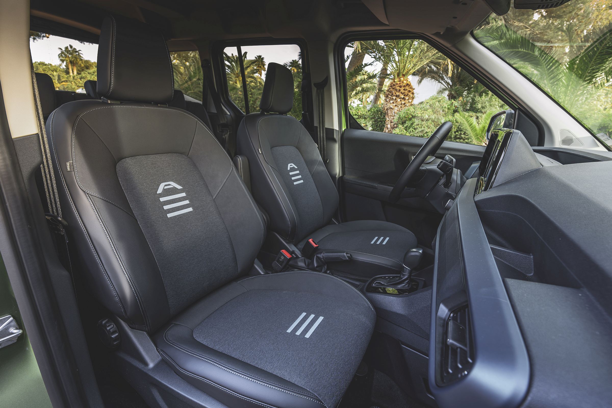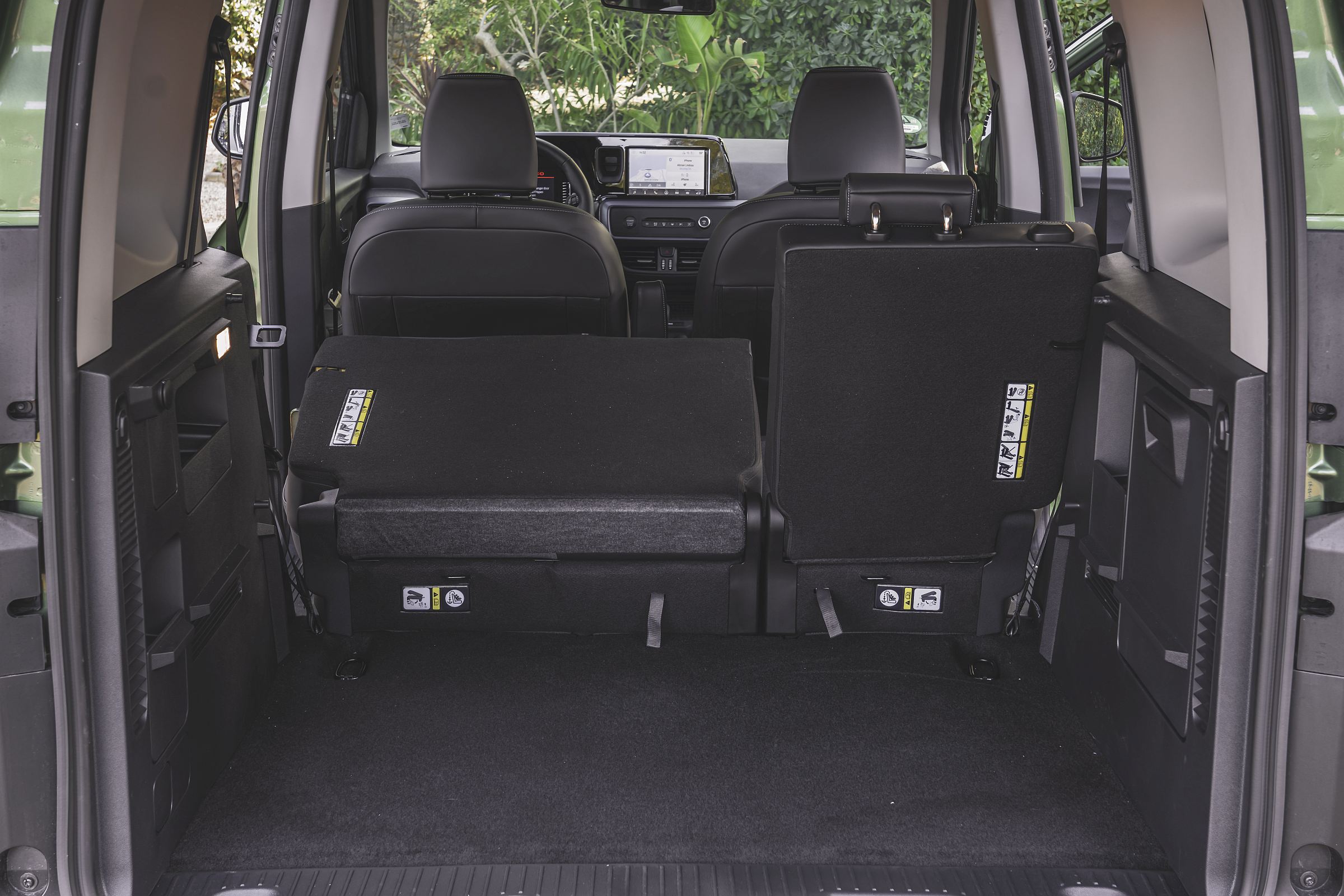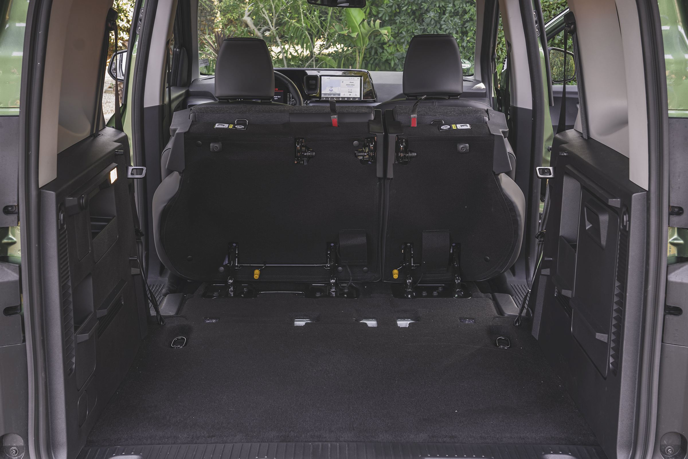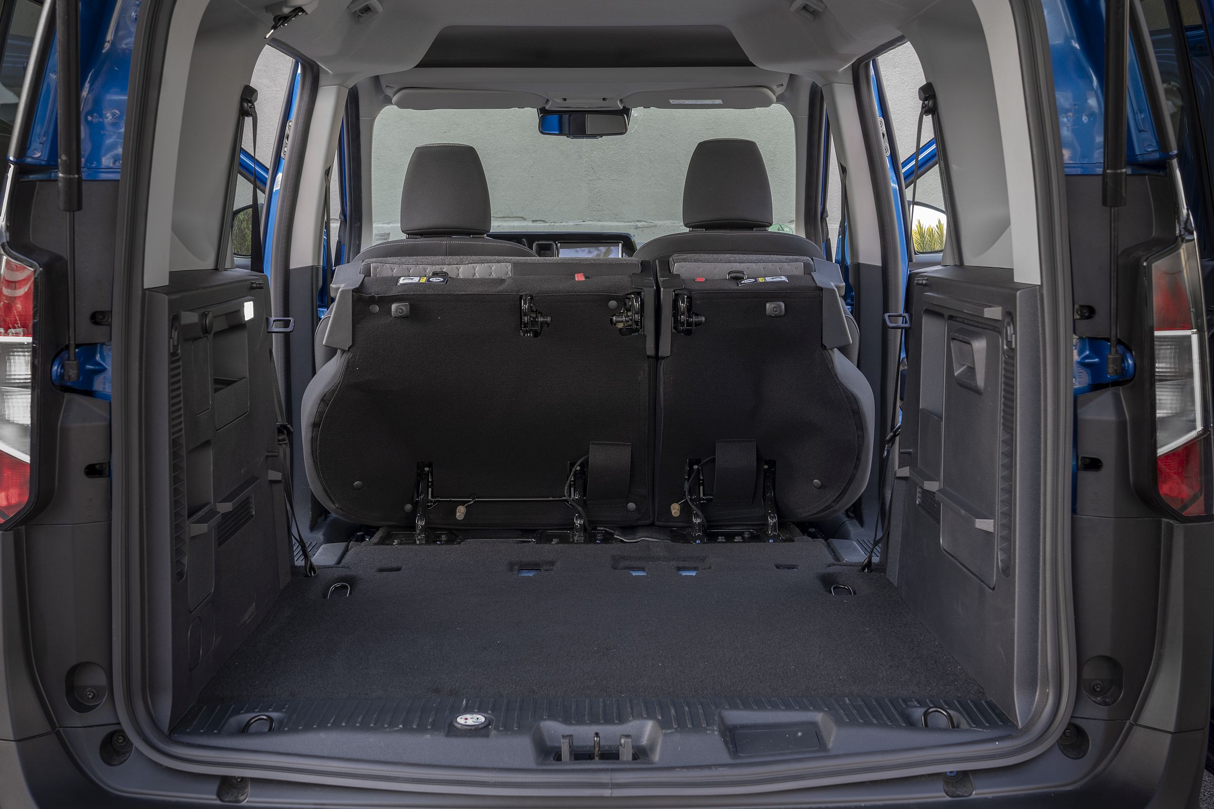 Cada Tourneo Courier vem equipado com um banco traseiro de três lugares, com mais espaço para a cabeça e para os ombros do que o modelo que substitui. Os bancos são bipartidos 60/40 e podem ser rebatidos e virados para facilitar o transporte de objetos até aos 1,4 metros de comprimento. Esses bancos são parcialmente revestidos em tecido técnico macio, de fácil limpeza, que não é afetado por roupa molhada e que não é frio ao toque no inverno. Para aceder ao interior, as portas traseiras laterais deslizantes incrementam a funcionalidade.