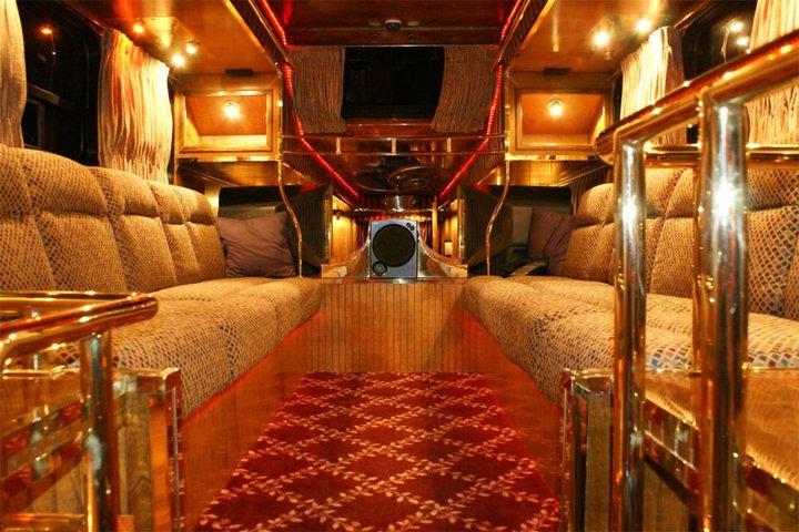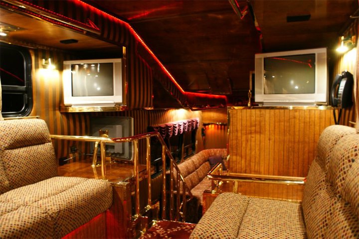 Mas, apesar dos seus enormes 21 metros de comprimento e mais de 4 em altura (pesa 25 toneladas e tem 22 rodas!), esta super-limusine também não poupa na decoração.