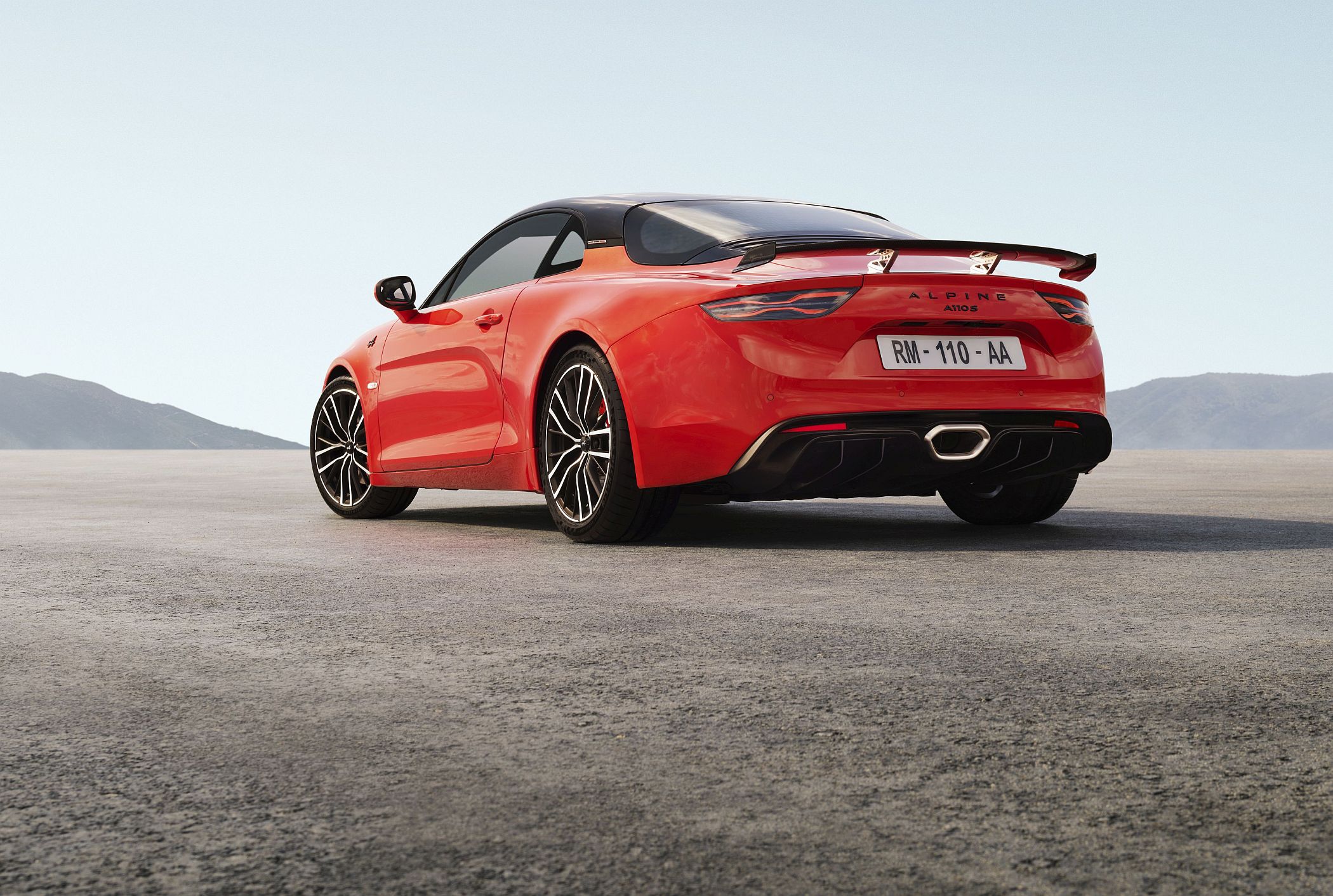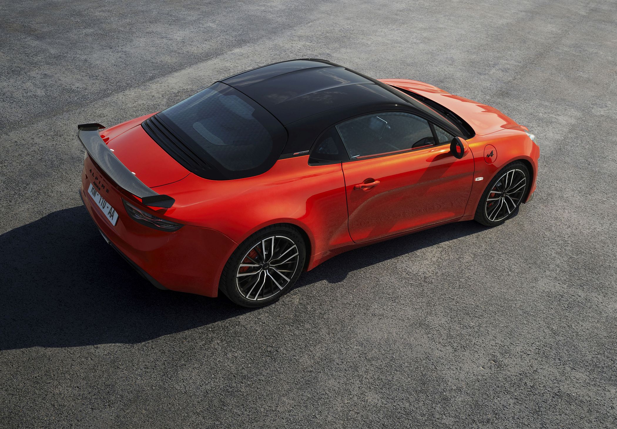 Por seu turno, o novo Alpine A110 S situa-se no topo da cadeia, sendo mais orientado para as prestações mais extremas, com chassis ‘Sport’, motor de 300 CV, pneus semi-slick Michelin PS Cup 2 opcionais e um kit aerodinâmico produzido à medida para este modelo que acentua a sua eficácia, sobretudo em pista. Em destaque neste modelo está o chassis afinado a preceito, contando com travões, sistema de escape e bancos desportivos de série. O pacote aerodinâmico opcional em carbono adiciona elementos agressivos. Há também possibilidade de contar com pintura bi-tom entre o laranja ‘Fire Orange’ e o tejadilho preto ‘Deep Black’.