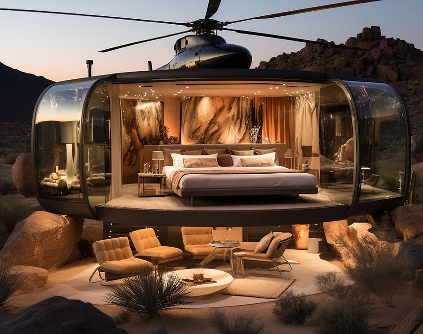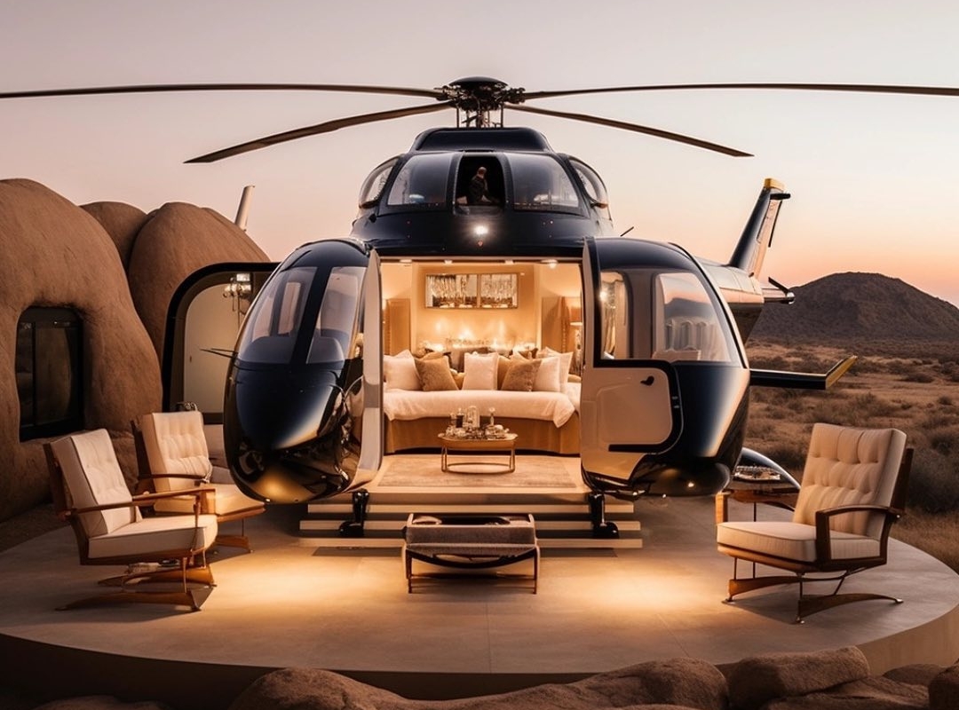 A Mega Remodeling Solutions vai inaugurar o seu primeiro resort de helicópteros, o “Helicopter Glamping”, em 2024, com uma série de aeronaves desativadas convertidas em quartos de hotel com todas as comodidades necessárias.