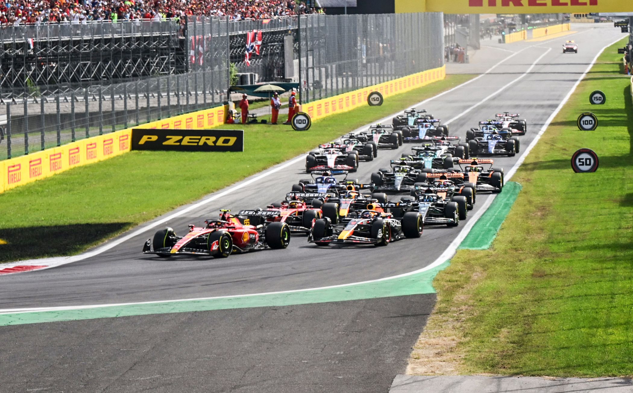 Os adeptos italianos rumaram a Monza com a esperança de ver um dos Ferrari ficar com o triunfo, sobretudo depois de Sainz ter feito a pole position e de Charles Leclerc ter ficado com o terceiro lugar na grelha de partida, mas o desenrolar da prova voltou a mostrar que os carros da Red Bull estão num patamar acima dos demais.