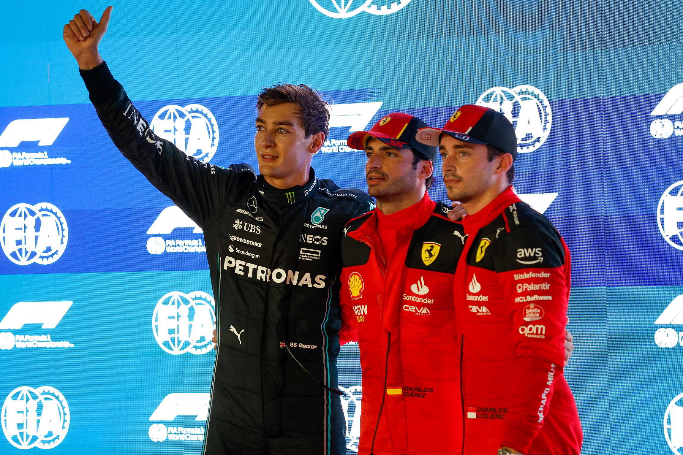 Leclerc ficou pouco atrás, a apenas 0,079s do piloto espanhol. Norris ficou com a quarta posição, a cerca de três décimos da pole position, ao passo que Lewis Hamilton (Mercedes-AMG) sem o ritmo de Russell, ficou na quinta posição, a meio segundo do melhor tempo.