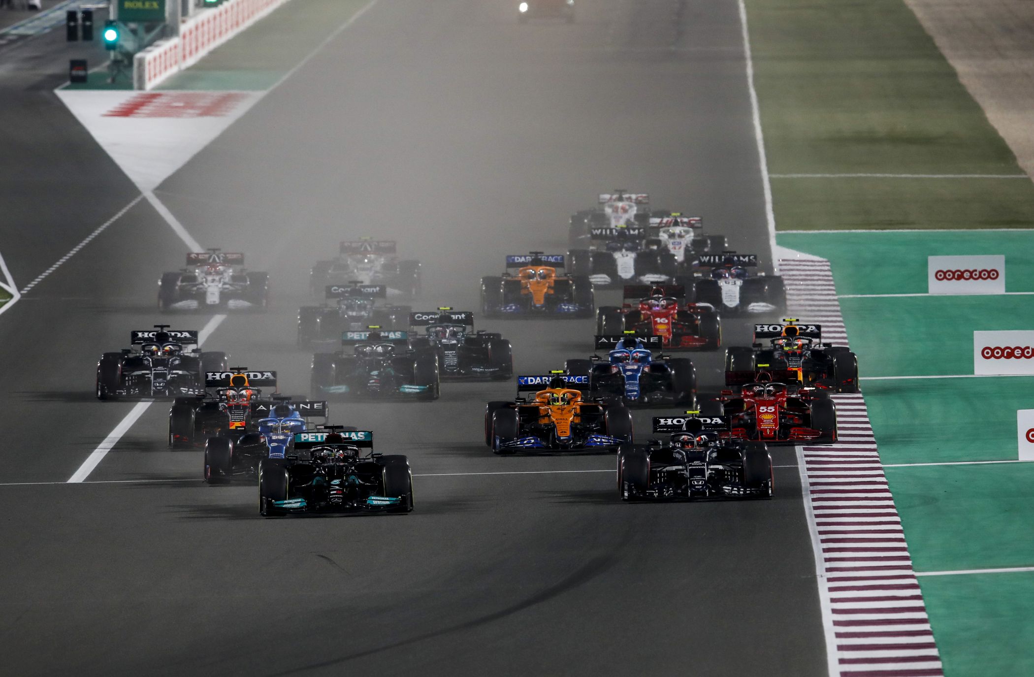 Esteban Ocon confirmou o bom resultado de conjunto da Alpine com o quinto lugar, logo à frente de Lance Stroll (Aston Martin), com ambos a efetuarem uma excelente prova na noite do Catar. A parelha da Ferrari, Carlos Sainz e Charles Leclerc, ficaram com as duas posições seguintes, reforçando a posição da equipa italiana no campeonato de Construtores face à McLaren, cujo melhor representante foi Lando Norris, na nona posição. Sebastian Vettel (Aston Martin) ficou com o derradeiro ponto.