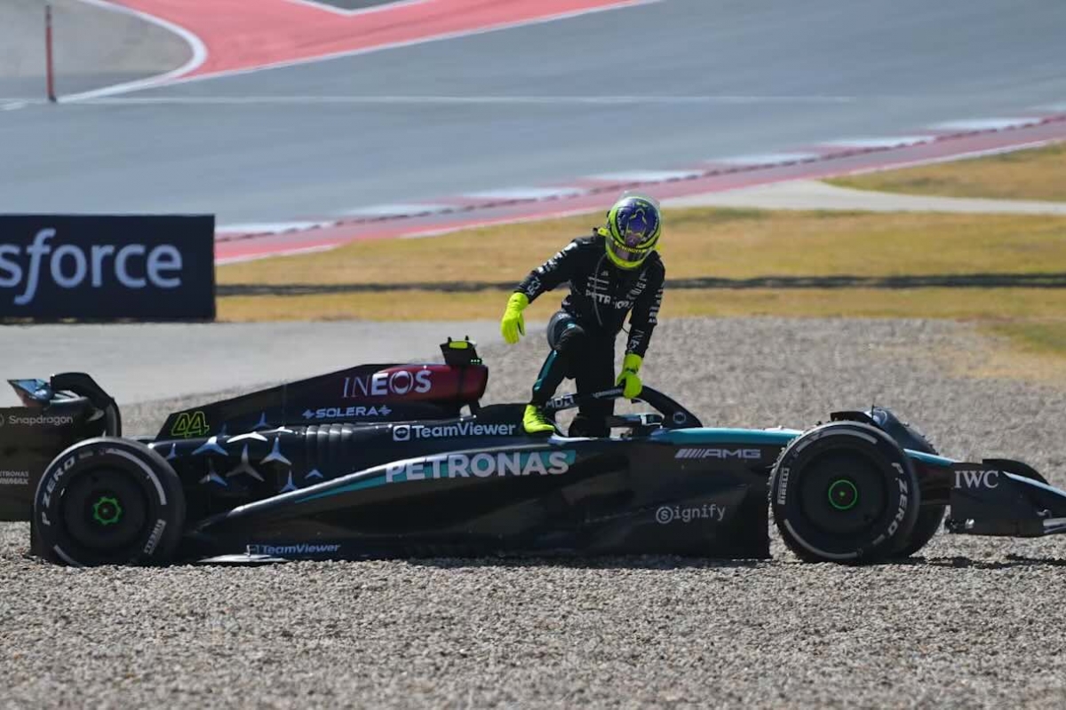Hamilton continuou a ser o único piloto a retirar-se em Austin, com o homem da Mercedes a não conseguir sair da gravilha depois de ter encalhado o seu W15 nas primeiras voltas do evento.