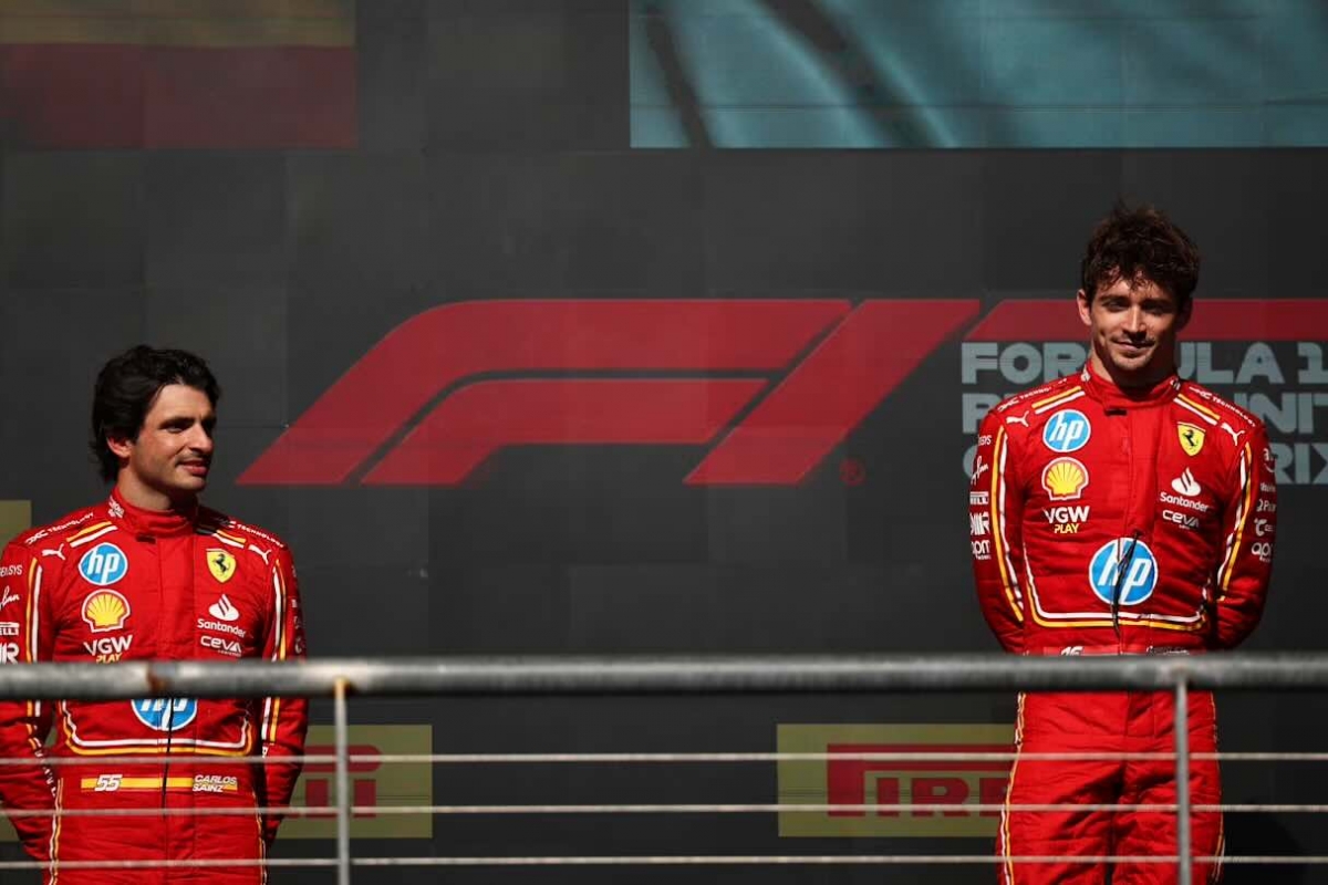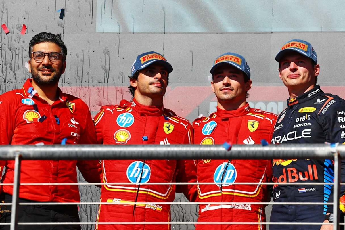 A dupla da Ferrari, Leclerc e Sainz, foi acompanhada por Verstappen no pódio