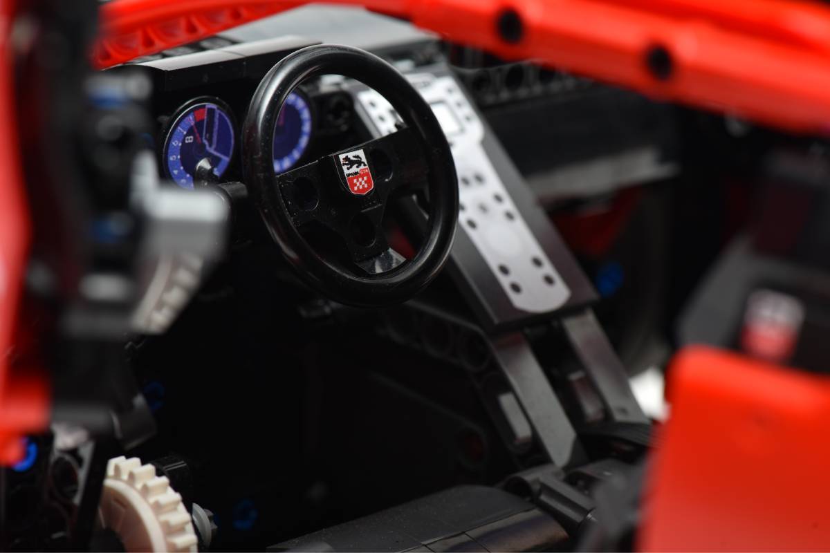 Réplica do exclusivo do GTA Spano construída à escala 1:8 em peças de LEGO atinge 36,5 km/h de velocidade máxima, cortesia de sistema motriz composto por nada menos que 15 motores elétricos; 10 encarregues de mover o veículo e mais cinco que permitem operar a direção, as portas e os travões.