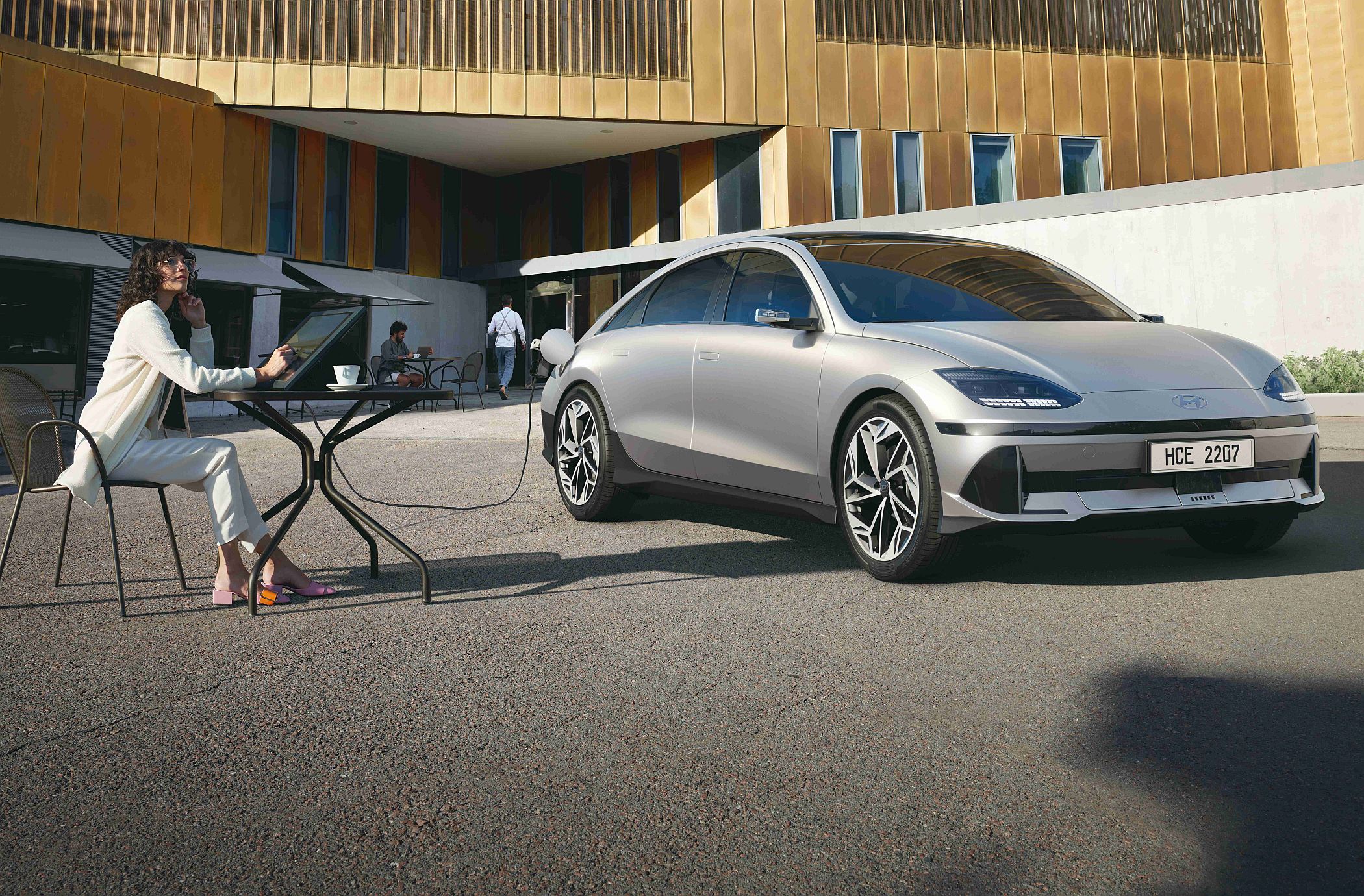 Tal como no IONIQ 5, este modelo oferece uma função ‘vehicle-to-load’ (V2L) que permite aos clientes carregar quaisquer dispositivos elétricos – ideal para alimentar outros equipamentos durante uma falha de energia, num acampamento ou outras atividades ao ar livre. Além da tomada exterior, existe uma segunda por baixo do banco de trás para carregar computadores portáteis, telefones e outros dispositivos.