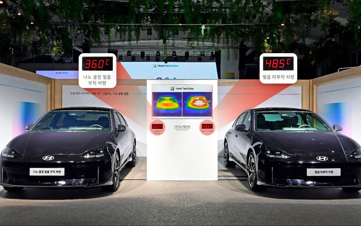 Durante os testes, o Hyundai Motor Group preparou vários veículos, aplicando a película “Nano Cooling” num deles e deixando o outro no seu estado original. Os veículos com o vidro normal e não equipados com a película “Nano Cooling” registaram uma temperatura interior de 48,5ºC, enquanto os veículos equipados com a película registaram uma temperatura de 36ºC, demonstrando uma redução máxima de temperatura de 12,5ºC com a tecnologia aplicada.