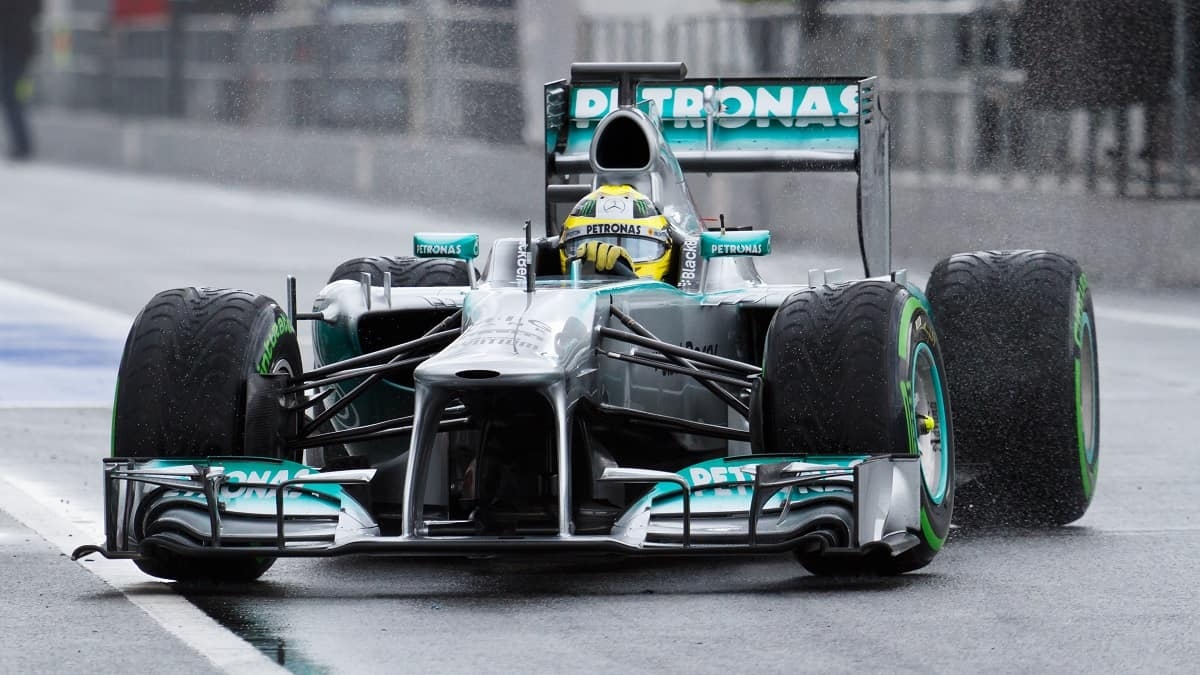 Depois da estreia na McLaren, a carreira de Lewis Hamilton na Fórmula 1 prosseguiu com a Mercedes, na temporada de 2013. O piloto britânico sentou-se aos comandos do W04, o monolugar que representou o fim da era dos motores V8 de 2,4 litros na categoria, antes da passagem para os híbridos V6 e o início do período de domínio para a Mercedes-AMG, com Hamilton a vencer seis campeonatos do mundo.