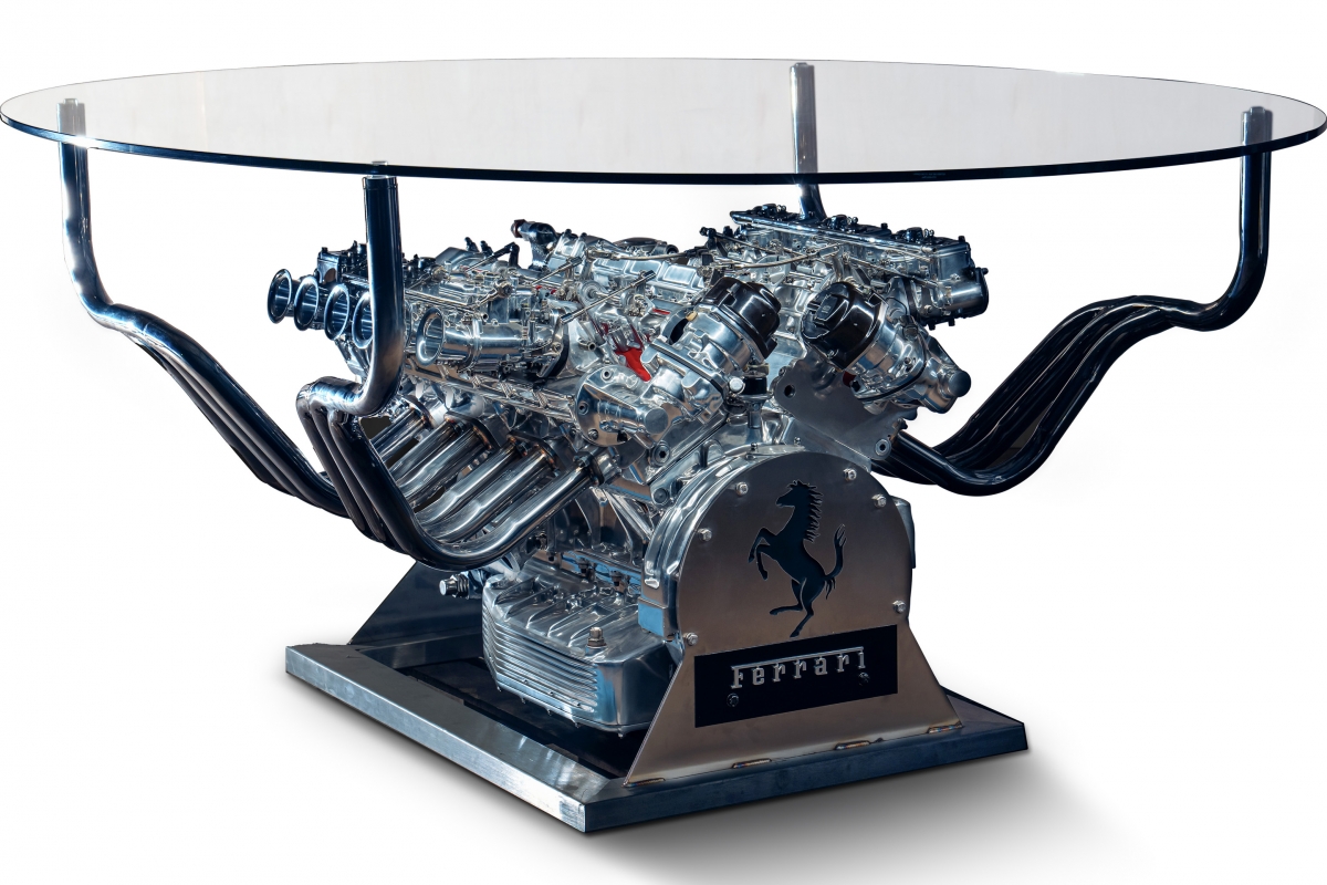 No próximo dia 10 de dezembro, a RM Sotheby’s vai promover o leilão daquela que pode ser a mesa de sonho para muitos fãs de automóveis, e da Ferrari em particular. Trata-se de uma peça única de mobiliário construída em torno de um motor V12 da Ferrari, tão especial e exclusiva como o preço estimado de venda: entre 30.000 e 60.000 euros, o mesmo que custa um VW Golf GTI com todos os extras possíveis!