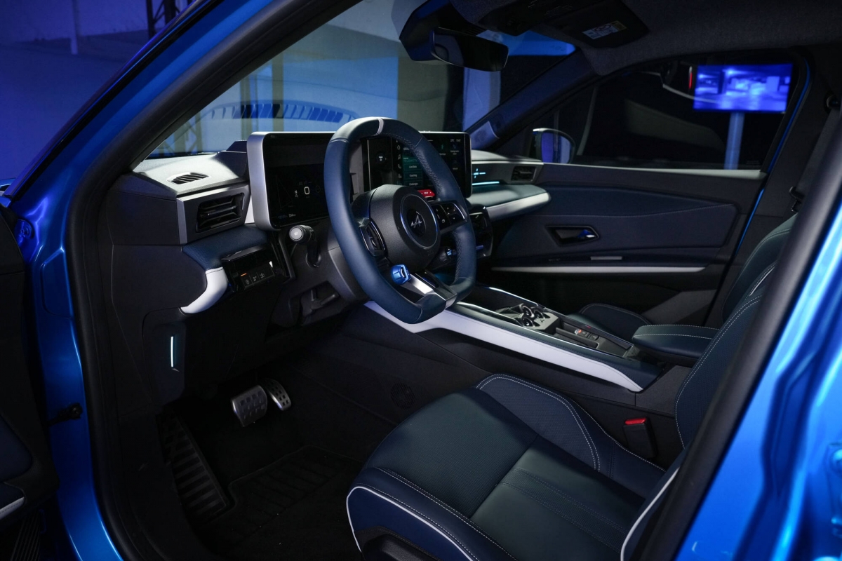 A bordo, o cockpit apresenta um design desportivo e requintado com, dependendo da versão, uma combinação de estofos em tecido azuis ou estofos em pele bi-tom cinzentos e azuis e ainda um painel de bordo bi-tom com retroiluminação A290 e, também, um ambiente luminoso personalizável. A consola central é inspirada no icónico design do Alpine A110, integrando os habituais comandos da transmissão RND. O exclusivo volante desportivo de três raios inclui o botão rotativo RCH (para calibrar a Regeneração) e o botão OV (para Ultrapassar), herdados diretamente do mundo das corridas de Fórmula 1.