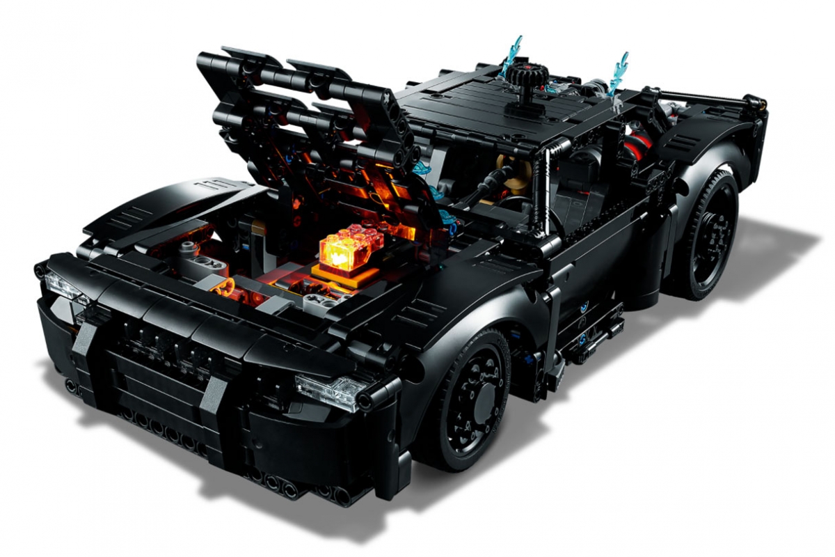 A Lego criou a versão em miniatura com todos os detalhes do carro do novo Batman, um ‘muscle car’ à americana, que corta com o estilo futurista dos últimos veículos da saga, ficando a meio caminho entre o Ford Mustang e um Dodge Charger clássico, com 1360 peças, duas delas iluminadas, na dianteira e na traseira do carro.