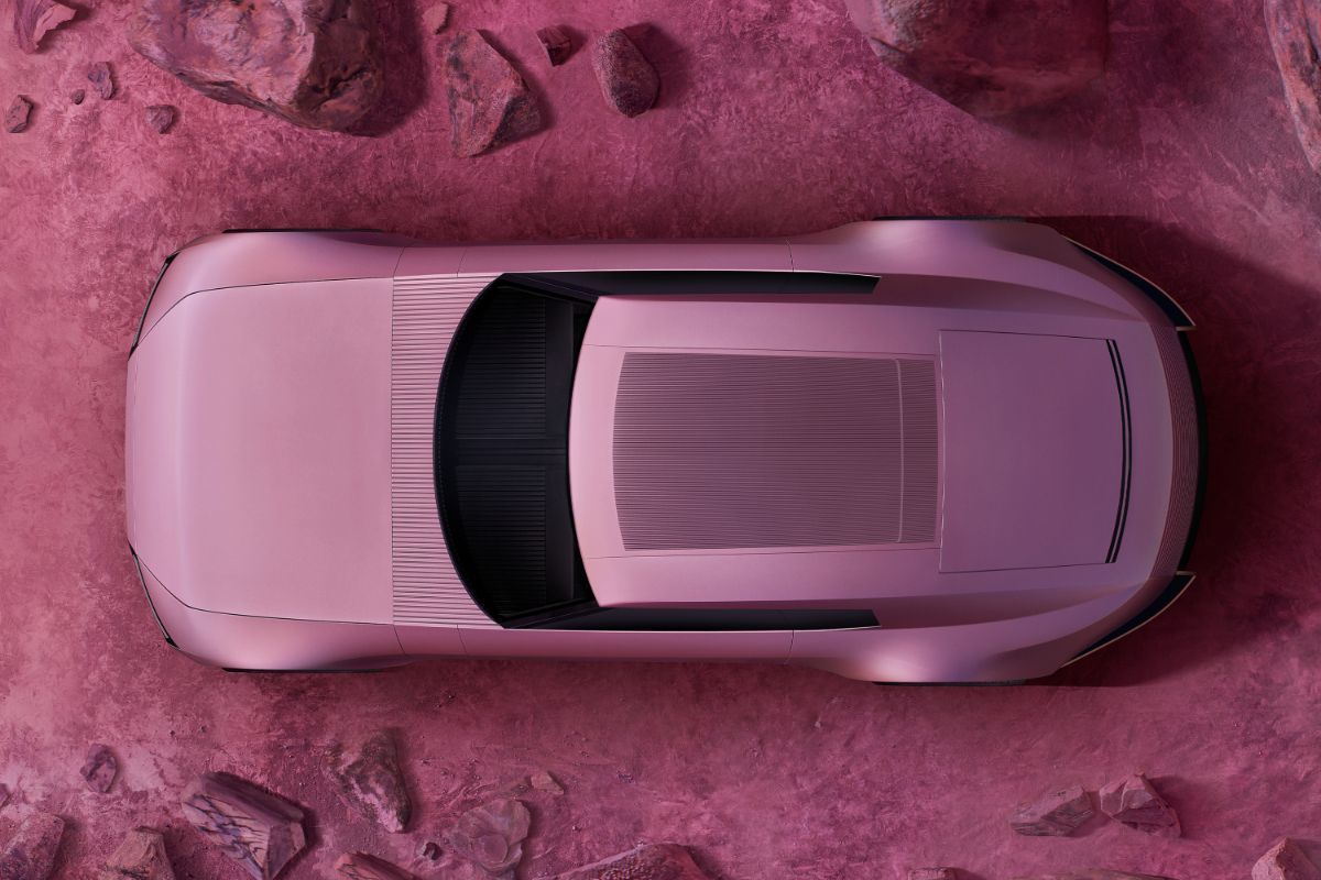 O conceito é um automóvel de superfícies planas, sem vidro traseiro e com um tejadilho panorâmico com vidros da cor da carroçaria.