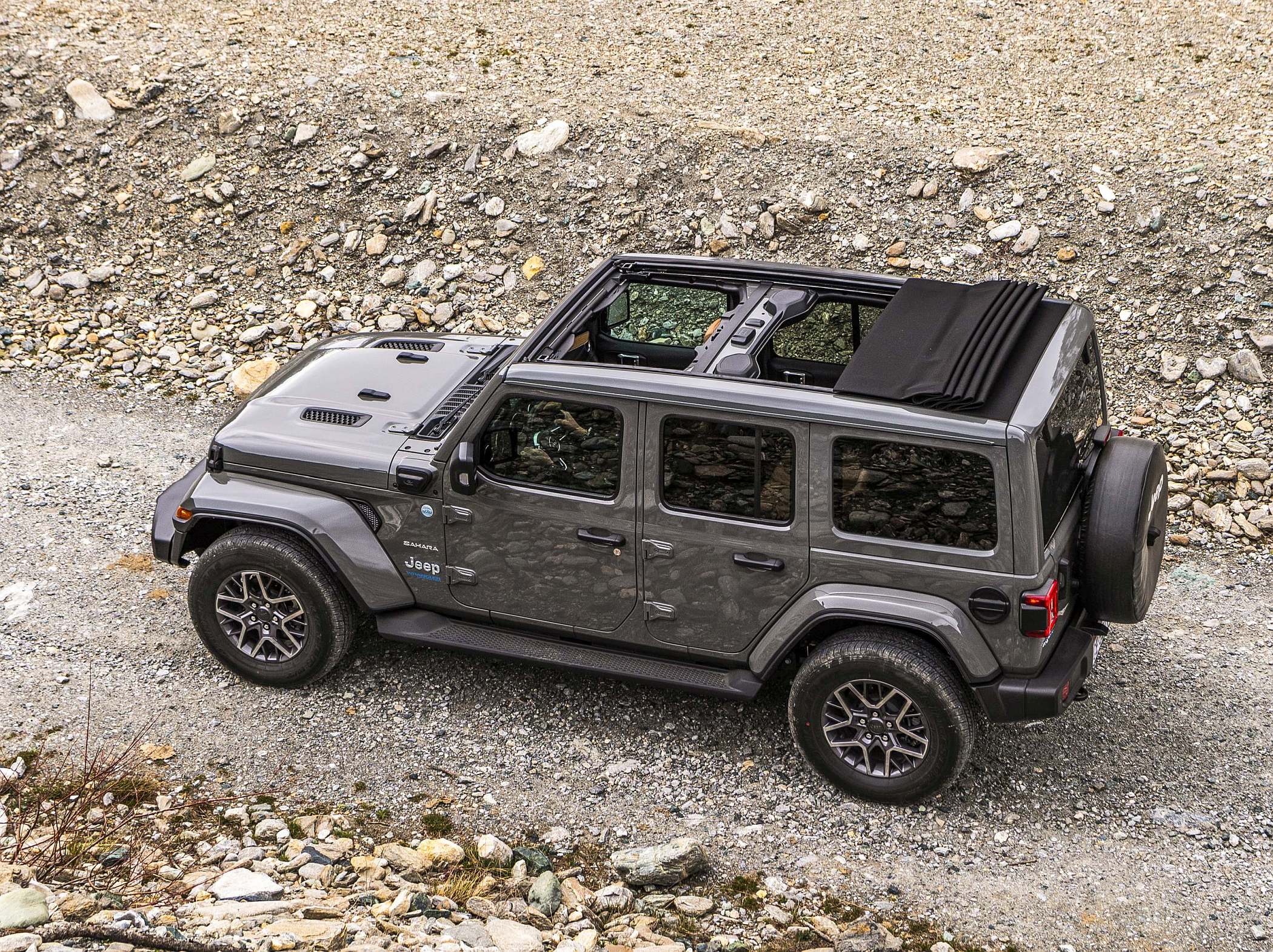 O novo Wrangler 4xe híbrido plug-in está disponível em três níveis de equipamento: Sahara 4xe, Rubicon 4xe e a exclusiva edição especial “80th Anniversary”, dois sistemas de tração 4×4 e jantes de liga específicas de 17 ou 18”. Em coerência com a aptidão do Wrangler para a personalização, estão disponíveis dez cores para a carroçaria: Preto, Branco Bright, Vermelho Firecracker, Cinzento Granite Crystal Metalizado, Amarelo Hella Yella, Prateado Billet Metalizado, Cinzento Sting e, pela primeira vez na gama, o novo Azul Hydro, Vermelho Snazzberry e Verde Sarge. Todas as opções de cor podem ser combinadas com as diversas configurações de tejadilho disponíveis para o modelo – capota maleável, capota rígida, capota maleável de comando elétrico e capota dupla – para uma imbatível experiência de condução a céu aberto, em típico estilo Wrangler.