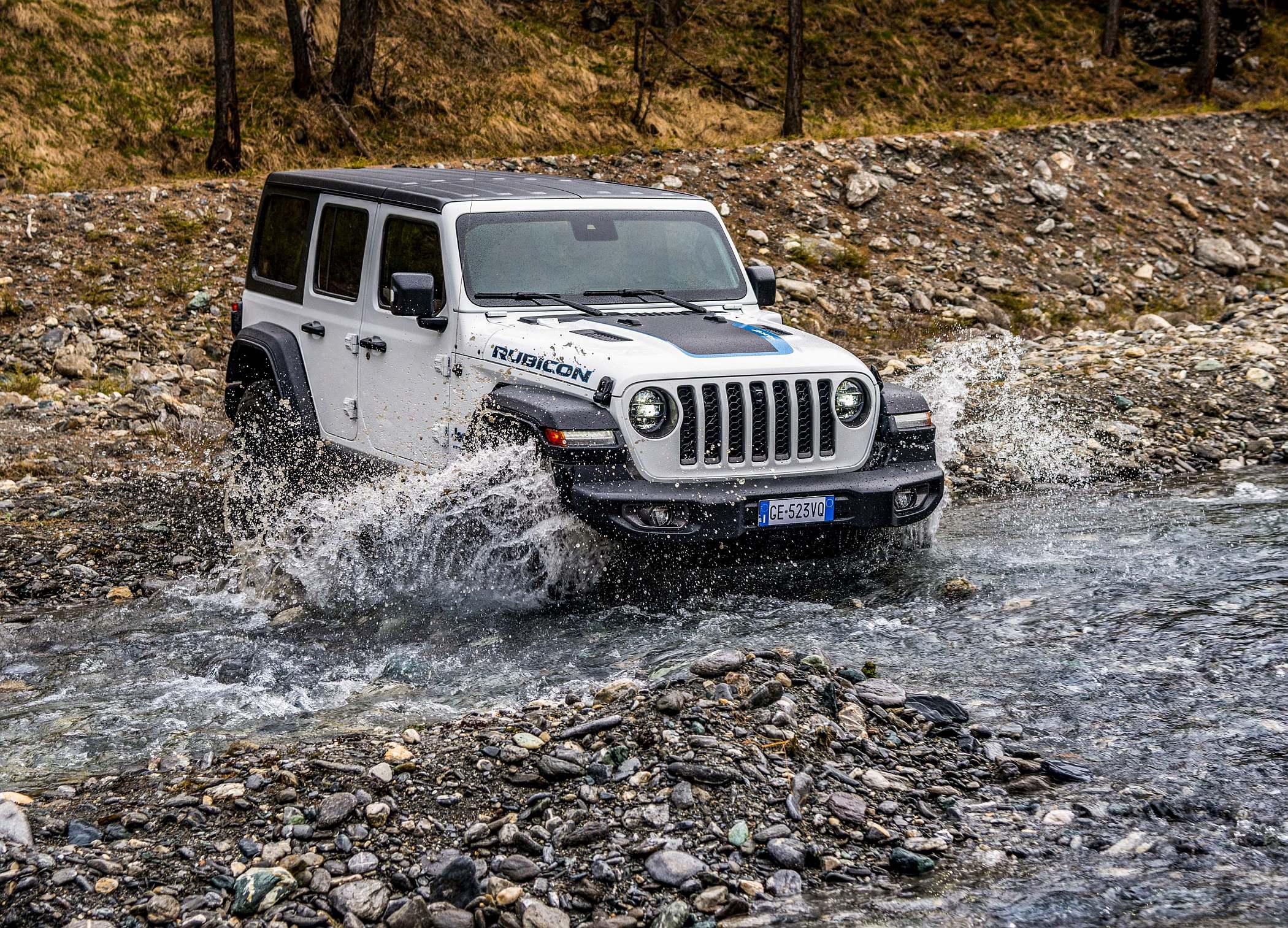 O novo Wrangler 4xe mantém os argumentos técnicos “Trail-Rated”. Dependendo do nível de equipamento, oferece dois avançados sistemas de tração integral permanente selecionável ativa (Selec-Trac ou Rock-Trac), eixos Dana de última geração, bloqueio elétrico dos eixos dianteiro e traseiro Tru-Lok, diferencial de autoblocante Trac-Lok e desconexão eletrónica da barra estabilizadora dianteira. É com estes argumentos que se mostra adaptado aos terrenos mais difíceis, sem locais proibidos pelo facto de ser agora eletrificado.