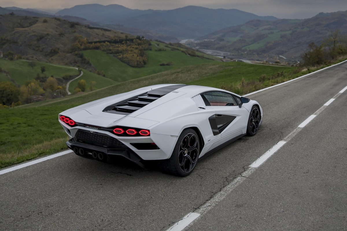 O Countach LPI 800-4 anuncia 0 a 100 km/h em 2,8 segundos e 355 km/h de velocidade máxima…